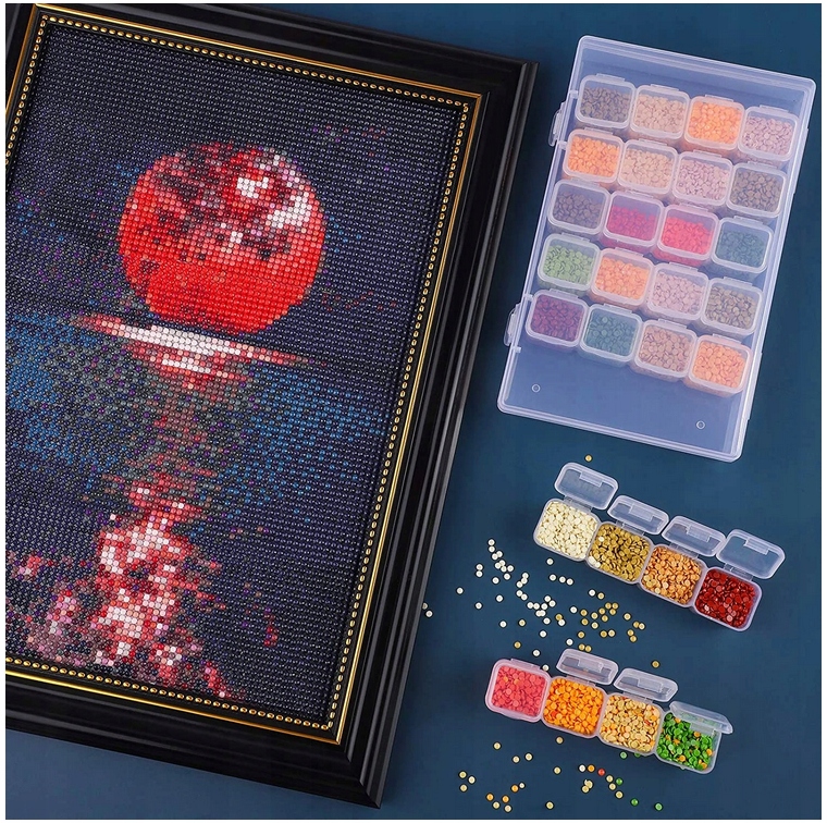 Благодаря органайзеру вам будет легче работать над мозаикой и поддерживать порядок, раскладывая бриллианты по отсекам. Каждое отделение и сам органайзер закрываются на кнопку, поэтому вы не прольете и не потеряете бриллианты.