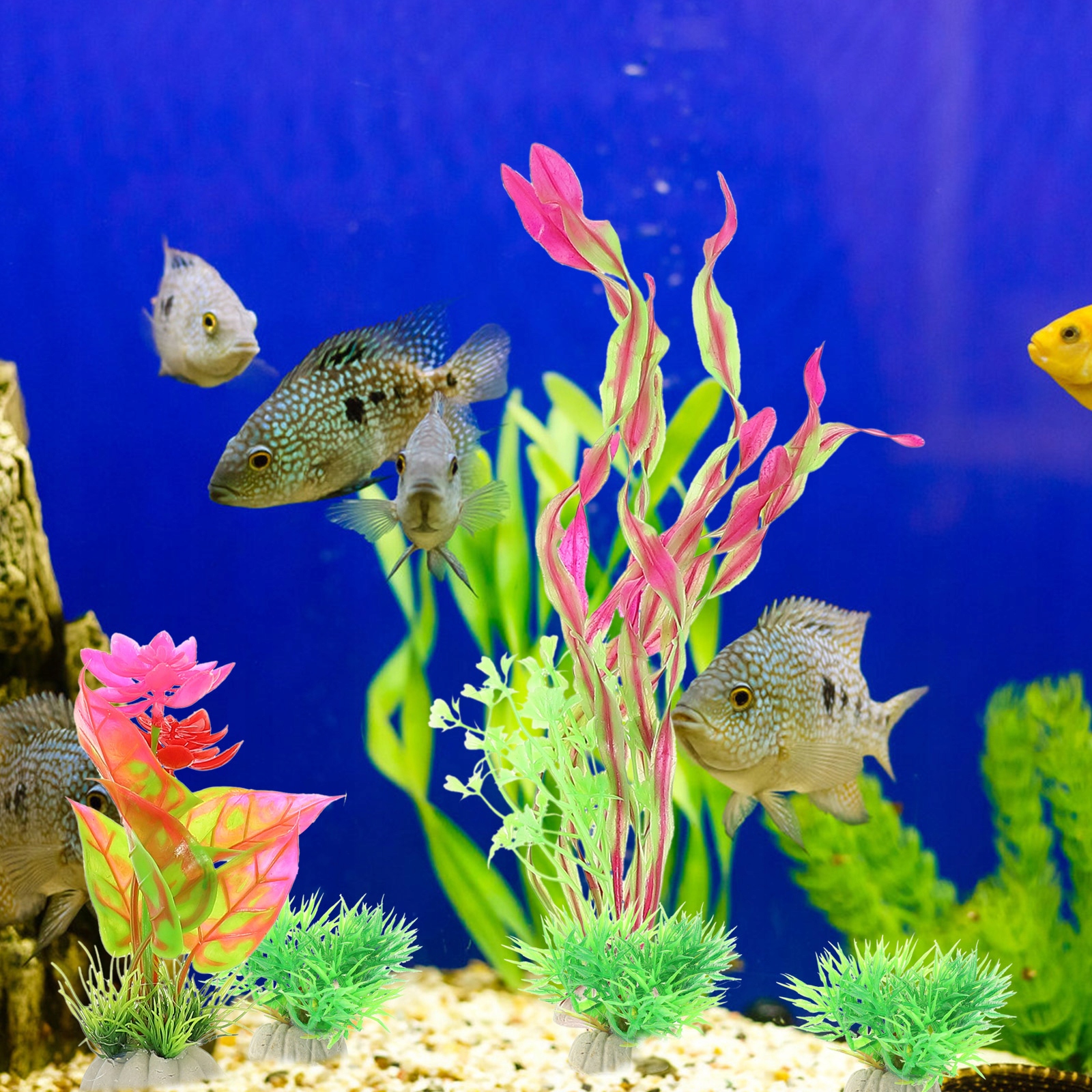 Дополнительные аквариумные растения изготовлены из безопасных и мягких материалов, которые не царапают рыб и домашних животных.