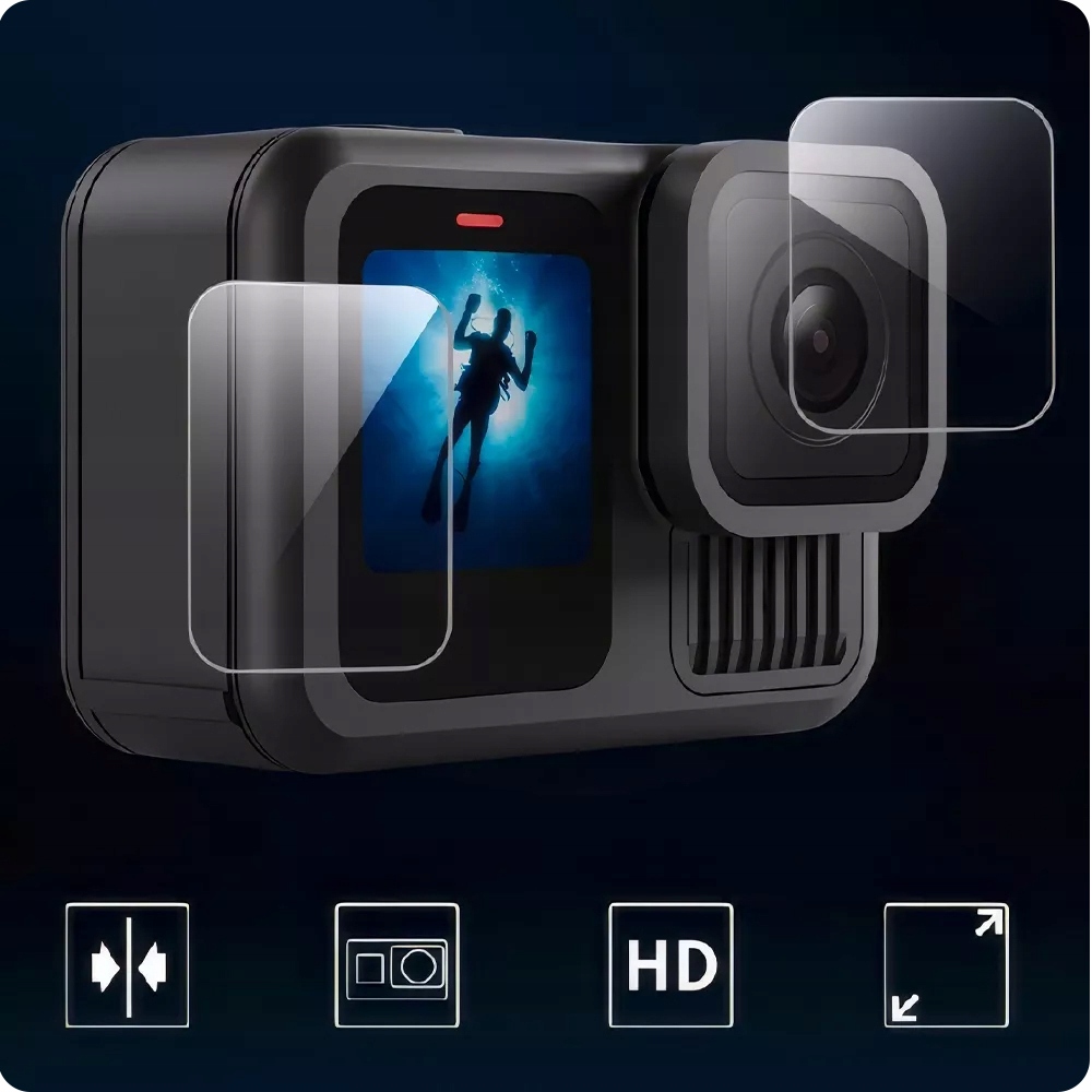 ✔ Аксессуары для GoPro 13 — набор из 3 закаленных линз для экранов из закаленного стекла 9H