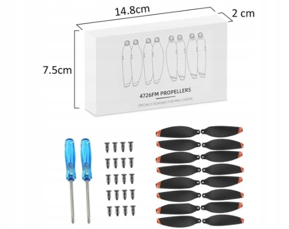 - Оснащенная миниатюрной отверткой и винтом, она поможет вам легко разбирать и собирать пропеллеры.