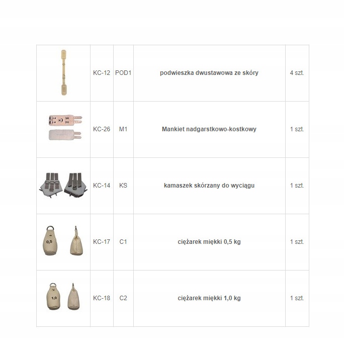 Комплект – минимум оборудования является одним из трех комплектов (по минимальной, стандартной, максимальной комплектации), предлагаемых для использования в Кабинетах универсальной терапевтической реабилитации, и состоит из наименьшее количество элементов (53 шт.). Они позволяют подобрать подходящий комплекс физических упражнений в зависимости от состояния и рекомендаций врача. Этот вид реабилитации называется кинезитерапией, которая является частью физиотерапии. Во многих случаях необходимо двигательное лечение – индивидуальная гимнастика нижних и верхних конечностей, позвоночника и т. д. Реабилитации помогают полиспасты с тросами, рычагами, подвесками и т.д.