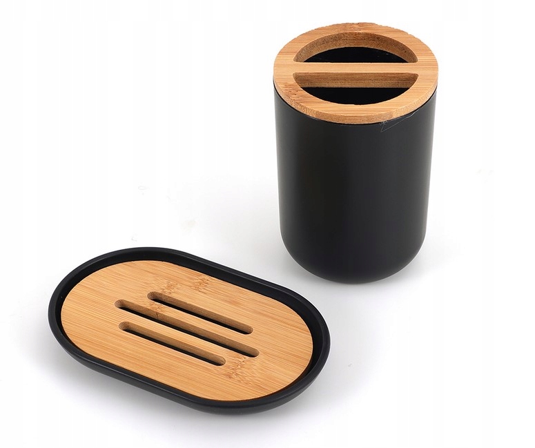 Материал глубокого черного цвета приятен на ощупь, а дизайн аксессуаров дополняют идеально контрастирующие бамбуковые акценты.