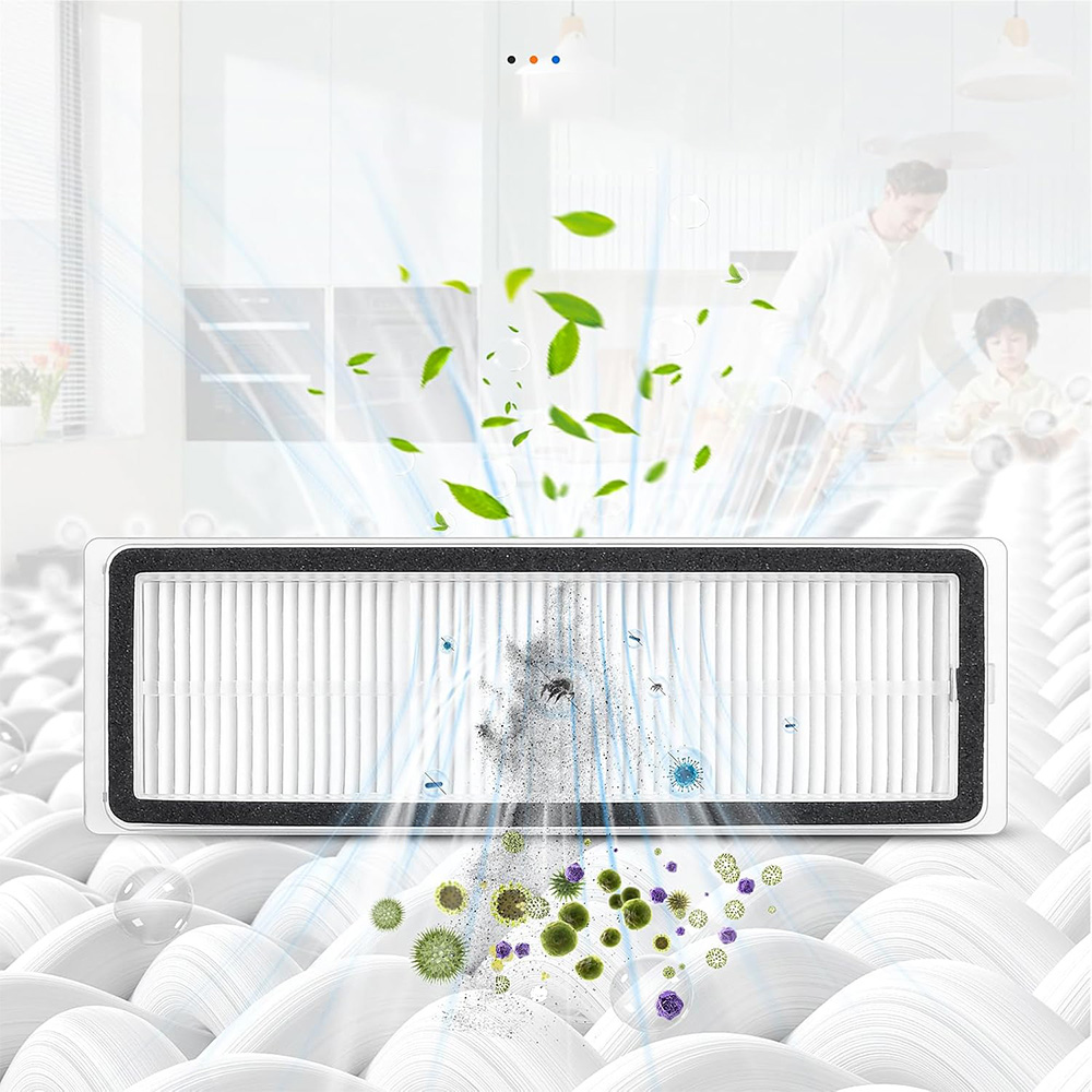 Салфетки изготовлены из 100% микрофибры с плотно прошитыми краями, которые эффективно впитывают воду и эффективно удаляют пятна. Фильтр изготовлен из прочных и экологически чистых материалов, которые эффективно фильтруют 99,99% шерсти животных, пыли и аллергенов.