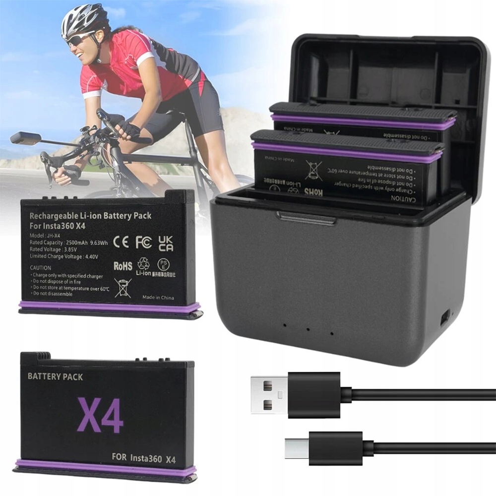 АКСЕССУАРЫ ДЛЯ INSTA 360 X4 КОМПЛЕКТ АККУМУЛЯТОРОВ 3X АККУМУЛЯТОР + БЫСТРОЕ ЗАРЯДНОЕ УСТРОЙСТВО
