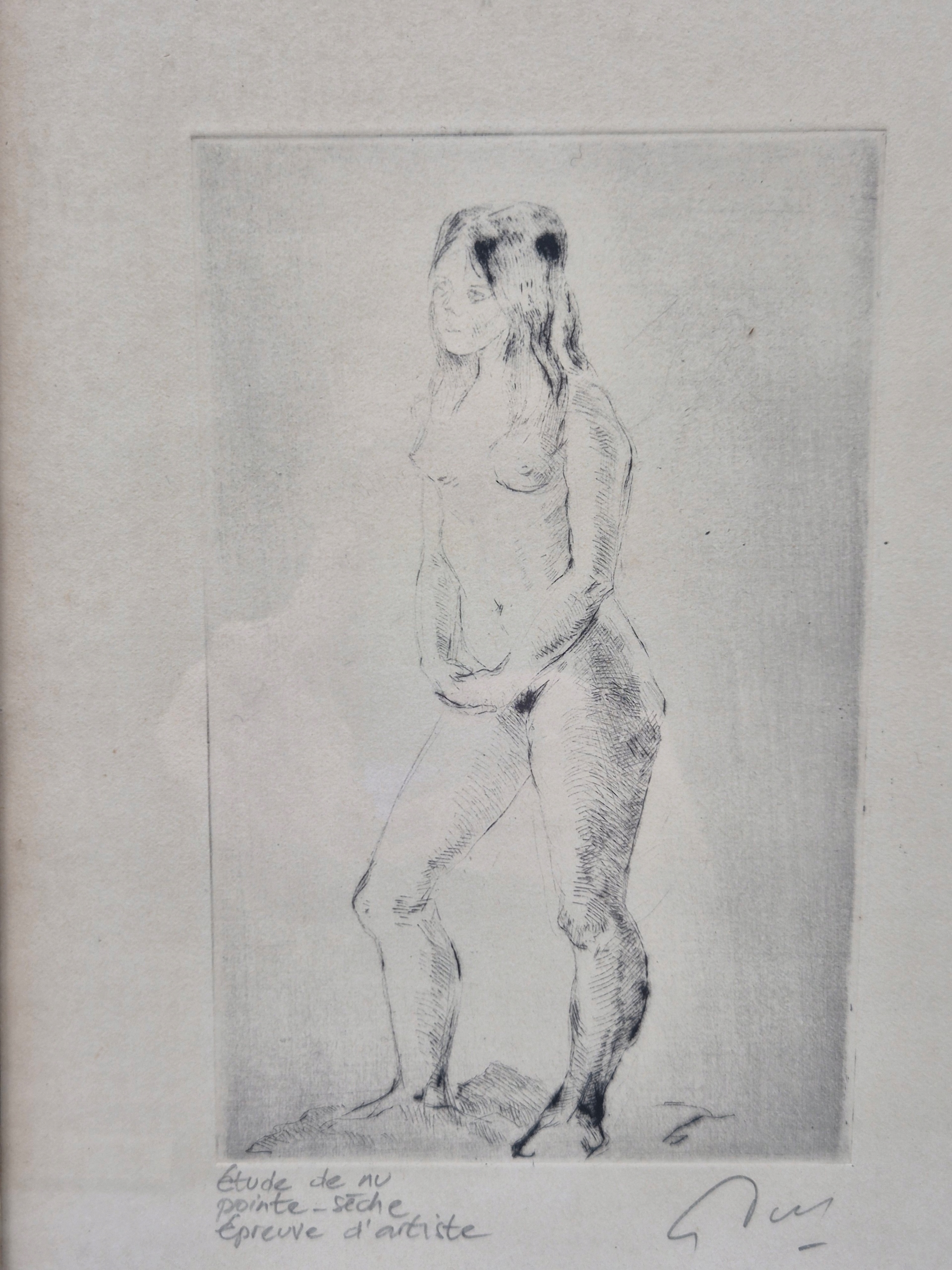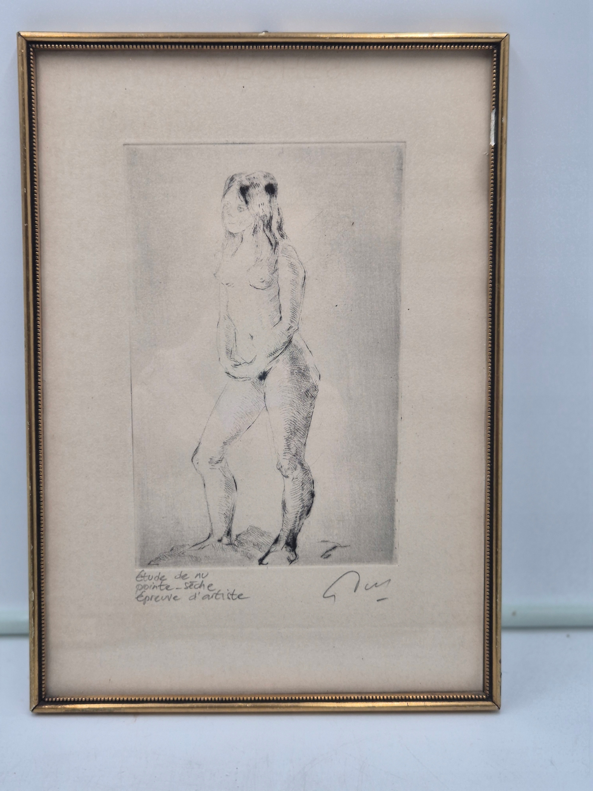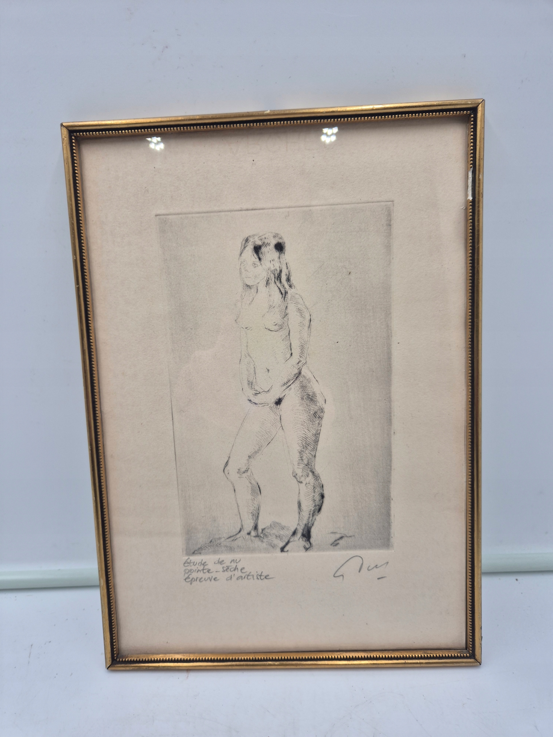 Обнаженная молодая девушка, оригинальный принт, Франция, подпись