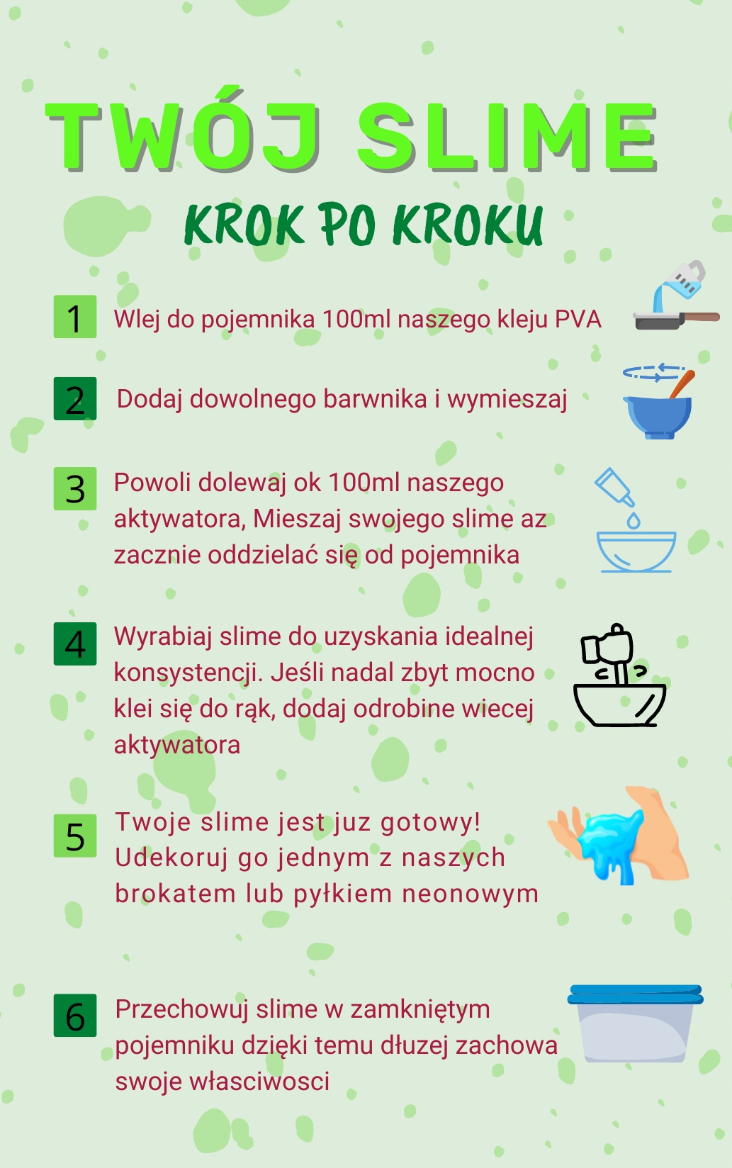 ✅ ШАГ 5 Ваш слайм готов! Украсьте его одним из наших продуктов: блестками, кинетическим песком и т. д.