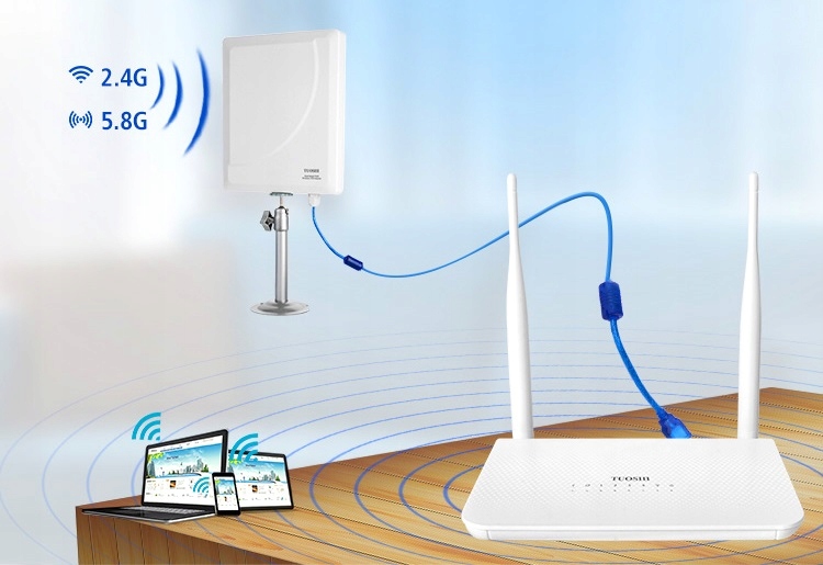 Комплект для приема и передачи Wi-Fi Маршрутизатор Open WRT + Активная антенна ХОТ-ТОЧКА ИНТЕРНЕТА до 10 км ВЫСОКАЯ МОЩНОСТЬ ДВОЙНОЙ ДИАПАЗОН переменного тока 600 Мбит/с 10 м USB