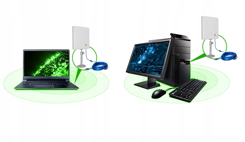 Рекомендуем комплект в основном для приложений в ноутбуках/ноутбуках и настольных компьютерах, где встроенный радиомодуль не дает удовлетворительных результатов - гарантированное улучшение качества сигнала по сравнению с тем, которое обнаруживается ноутбуком с Wi-Fi!!
