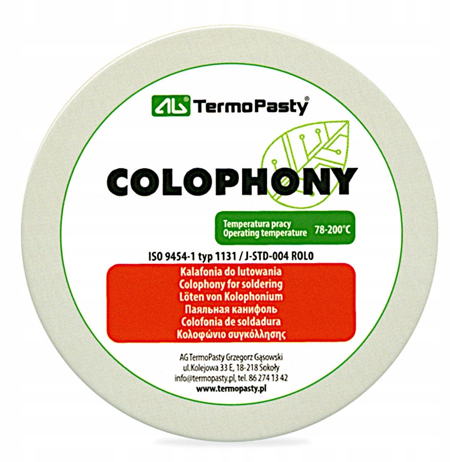 В качестве основы эталонного флюса используется канифоль от AG Termopasty, представляющая собой 25% раствор в изопропиловом спирте. Это не паяльная паста, но действие у нее аналогичное. Идеально подходит для пайки сплавом олова и свинца. Его часто используют для натирания щетины смычков, чтобы улучшить сцепление со струнами. Пайка и сварка – не единственные области применения канифоли. Он также полезен в полиграфии, поскольку может входить в состав лаков и красок.
