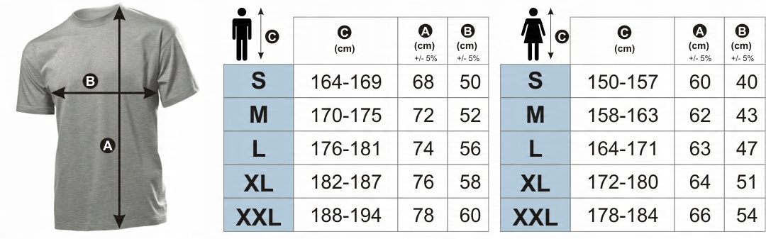 - Женская модель (S-XL) и мужчины (S-XXL)