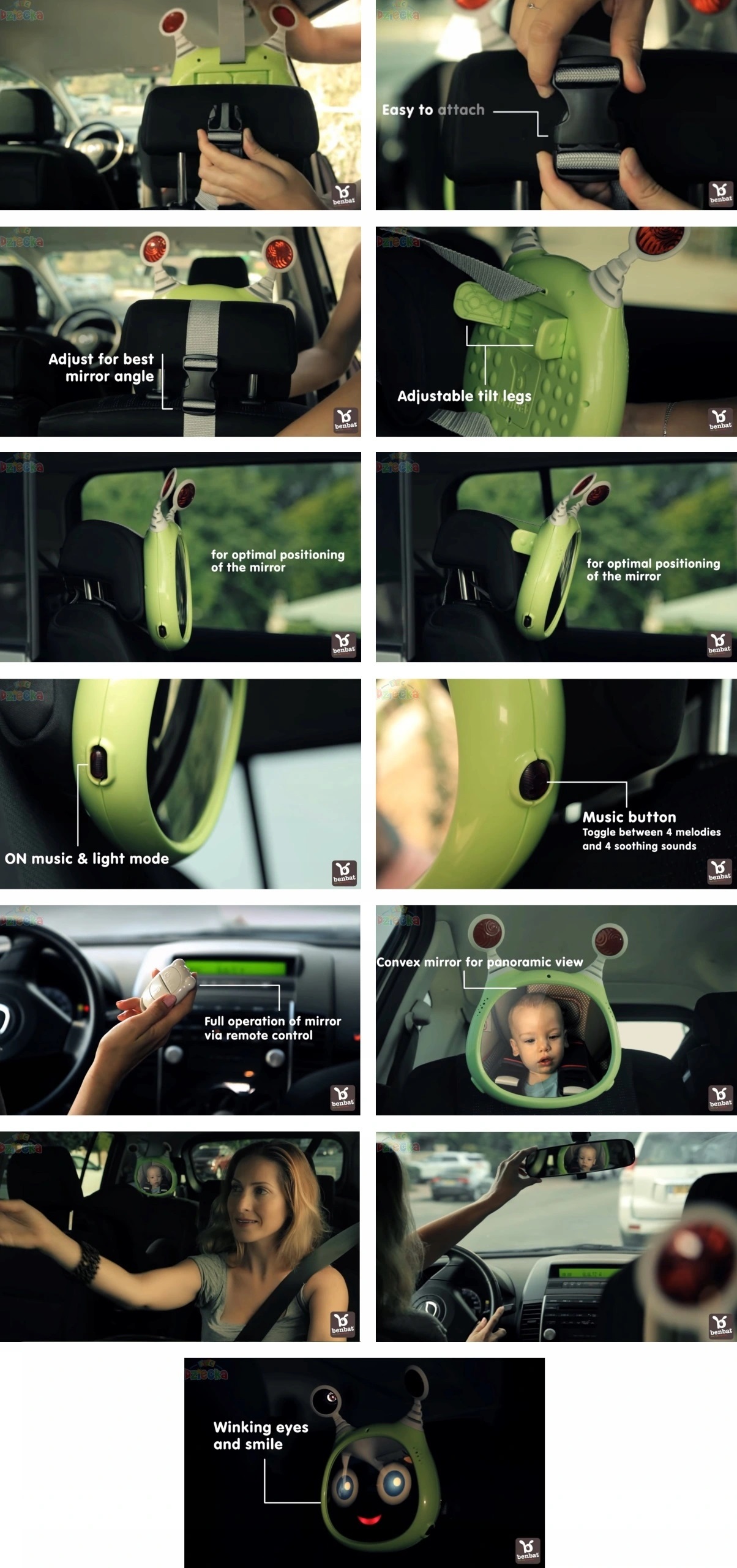 Оно оснащено широким выпуклым зеркалом, которое забавно моргает глазками, улыбается и играет, делая длинные и короткие машинки. поездки более приятны для ребенка.