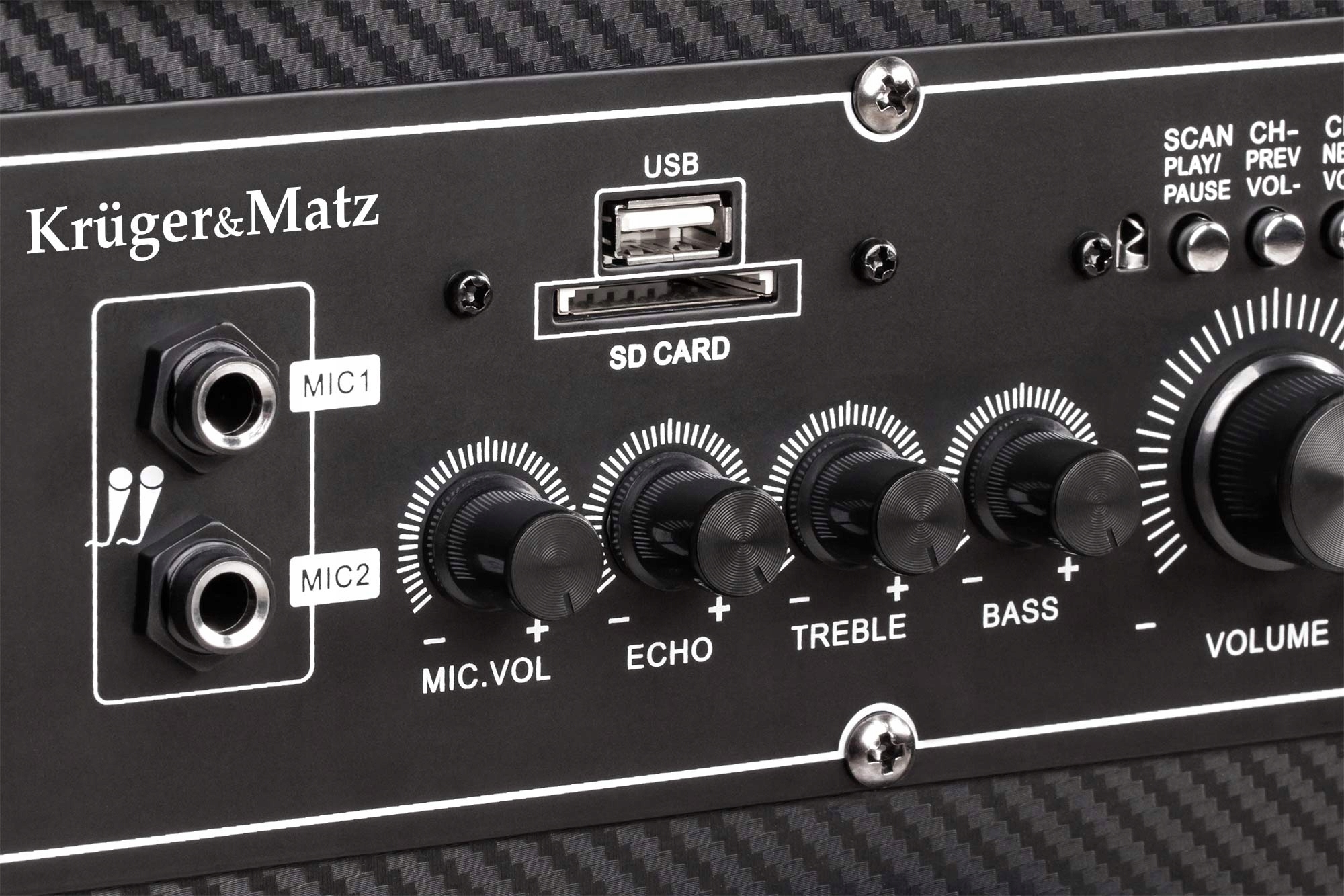 На этом возможности сценических колонок Kruger&Matz Stage Lite не заканчиваются. Комплект оснащен FM-радио, благодаря которому вы и ваши друзья сможете веселиться в ритме хитов любимой радиопередачи.
