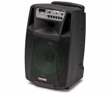 активная колонка с USB/SD-плеером, двумя беспроводными ручными микрофонами, встроенным аккумулятором и 12-дюймовым динамиком