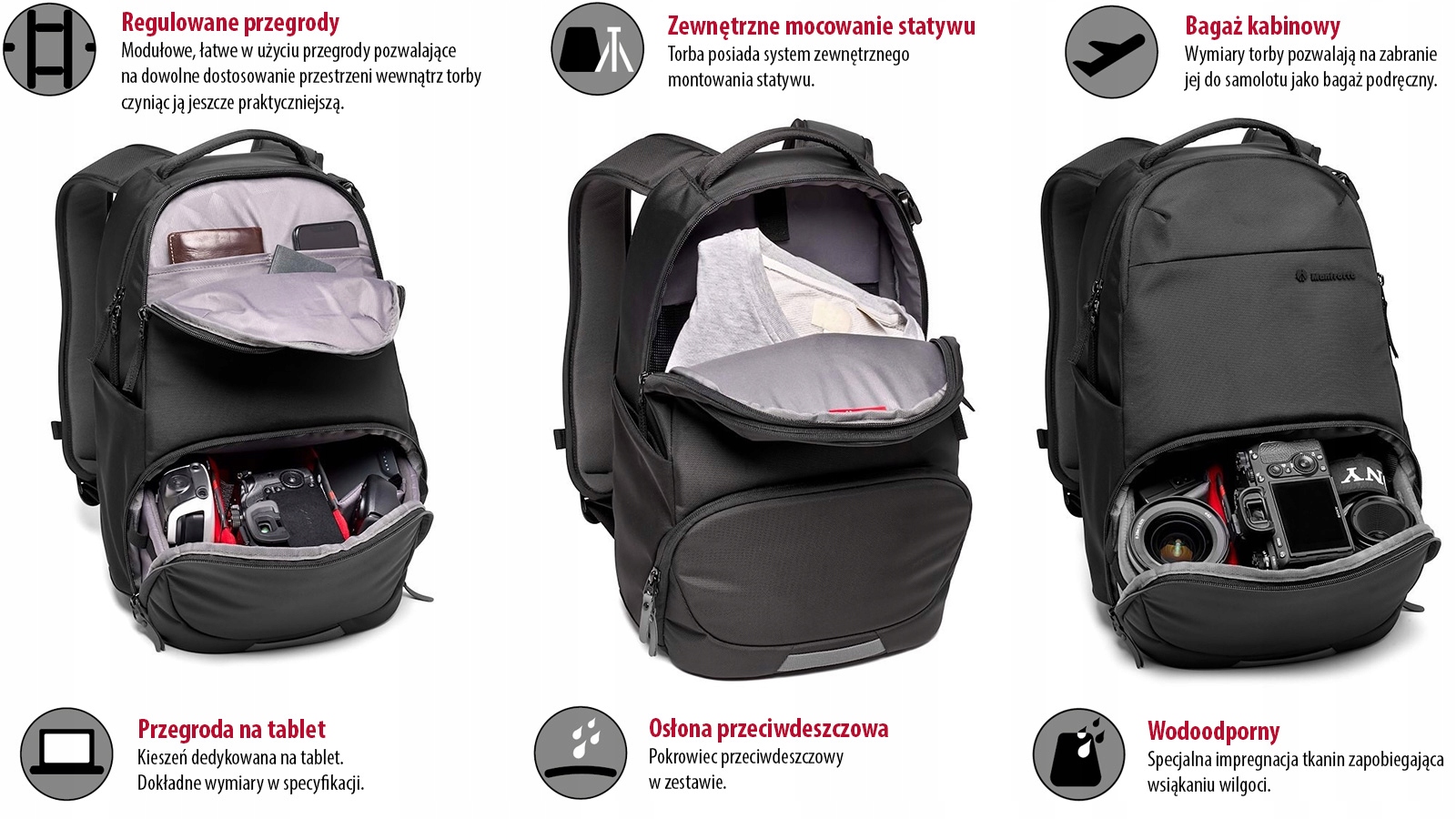 - Вмещает зеркальную или беззеркальную камеру и до 3 объективов.