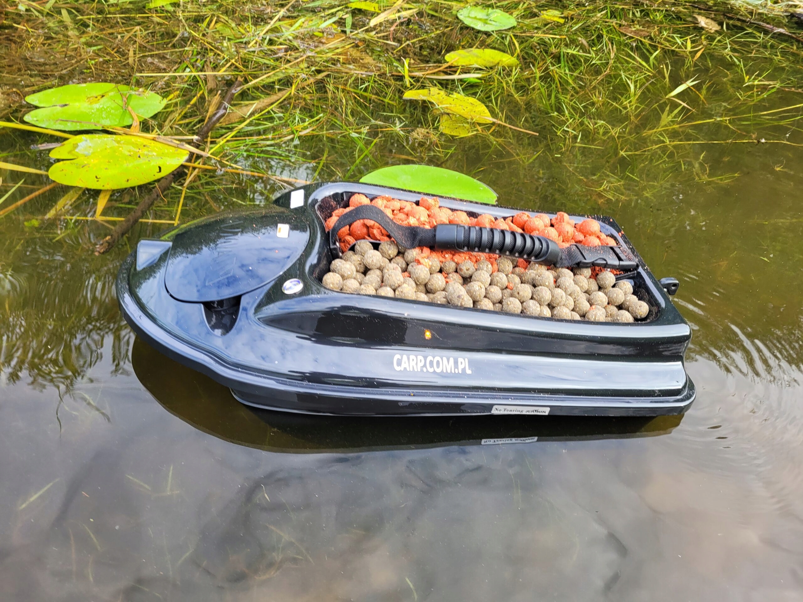 Актер имеет две камеры по 1,5 кг сухой приманки. Мы нажимаем кнопку выпуска на пульте дистанционного управления, и лоскут открывается, при необходимости выпускает линию рыбалки и приманку.