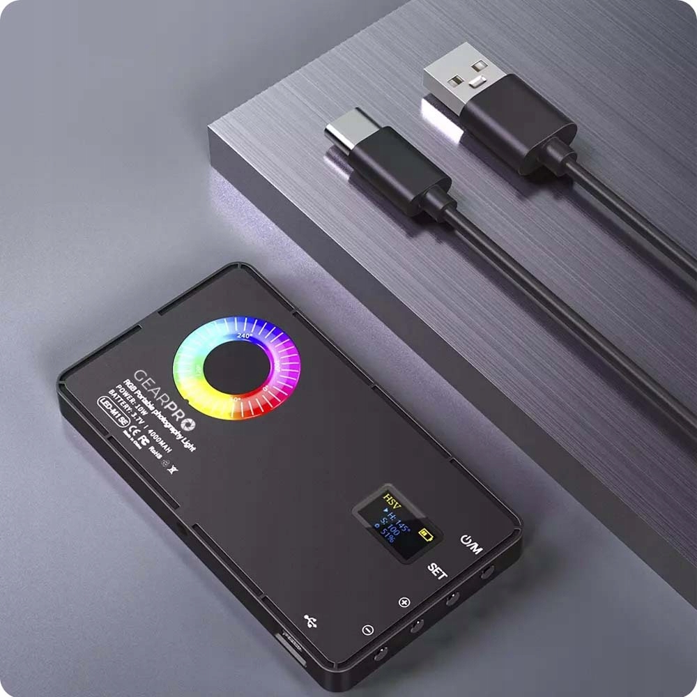 Профессиональная светодиодная лампа GearPro RGB M1 со сменой цвета, регулировкой цвета света, освещением фильмов, видео, блогов для смартфона, фотоаппарата, видеокамеры, GoPro Osmo Action, Insta, Xiaomi