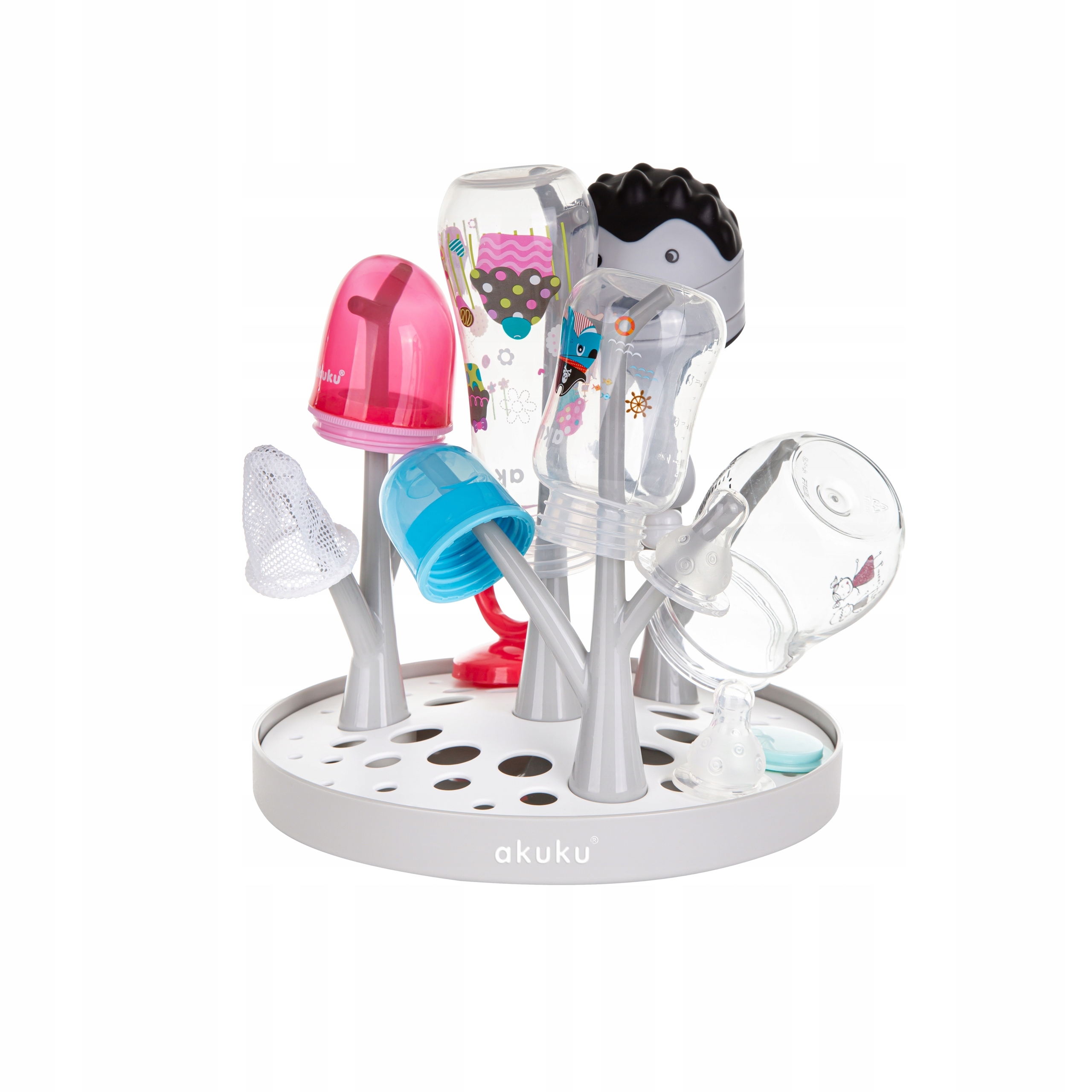 Универсальная сушилка для бутылок и аксессуаров – идеальный продукт как дома, так и в путешествии. Он функционален, подходит для всех типов бутылочек, легко собирается и чистится. Он сконструирован таким образом, чтобы легко набирать воду, не помещая его в раковину.