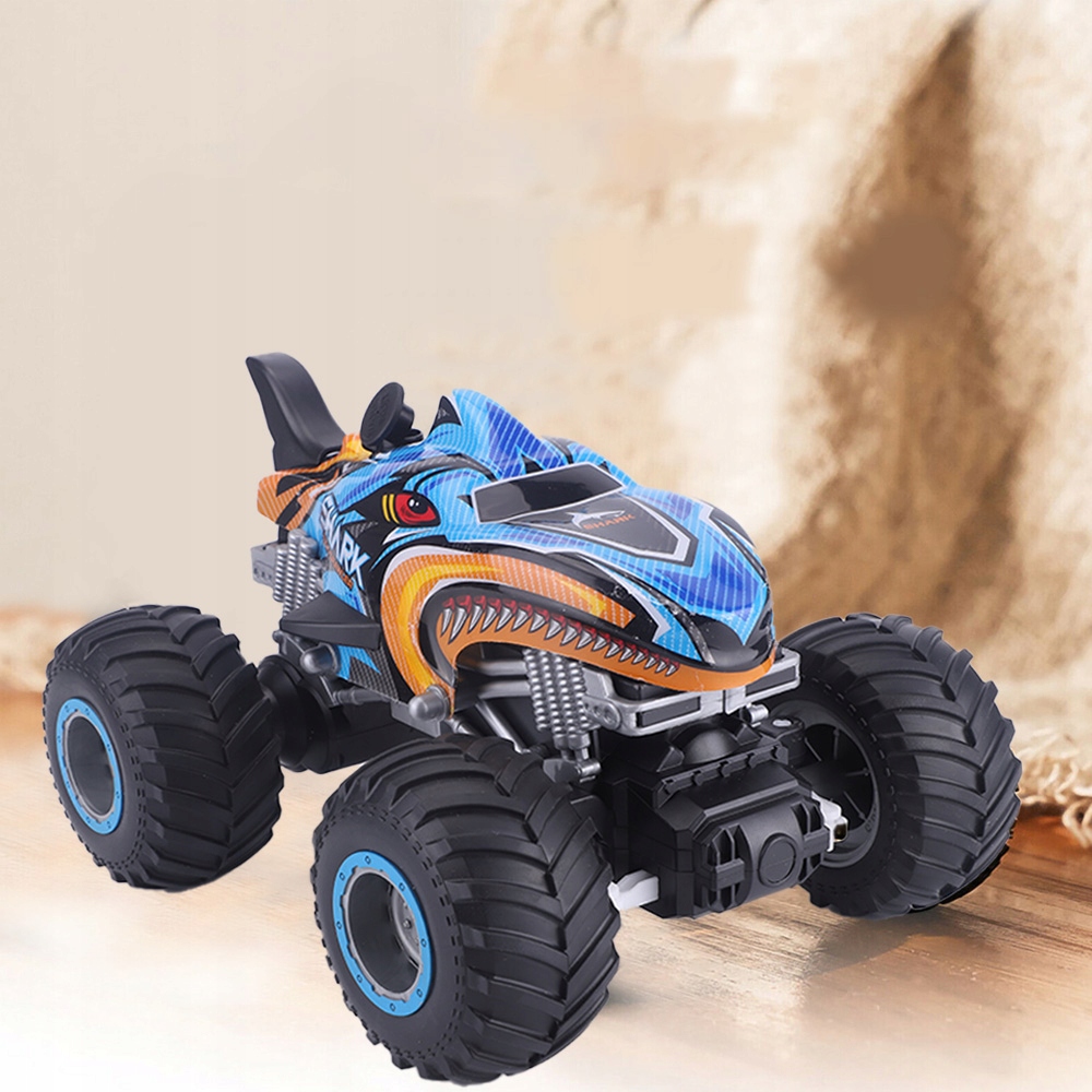 Удаленный -контролируемый автомобиль имеет внешний вид и дизайн грузовика -монстра в форме акулы. Музыкальный и легкий эффект очень привлекателен для детей. Этот отдаленный автомобиль подходит для большинства районов, таких как газоны, гравия, почва, камни, на пляже, благодаря тому, что дети могут играть с ним в большинстве сред.