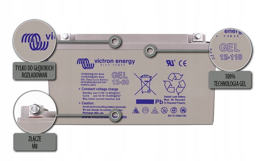 Серия гелевых моделей обеспечивает большую долговечность, глубокие циклы и более длительный общий срок службы. Использование материалов высокой чистоты и кальций-свинцовых сеток обеспечивает особенно низкий саморазряд как AGM, так и гелевых аккумуляторов, благодаря чему они не будут разряжаться в течение длительного периода времени без зарядки. Оба типа оснащены медными плоскими клеммами с отверстиями M8, что обеспечивает наилучший контакт при подключении и исключает необходимость использования аккумуляторных зажимов.