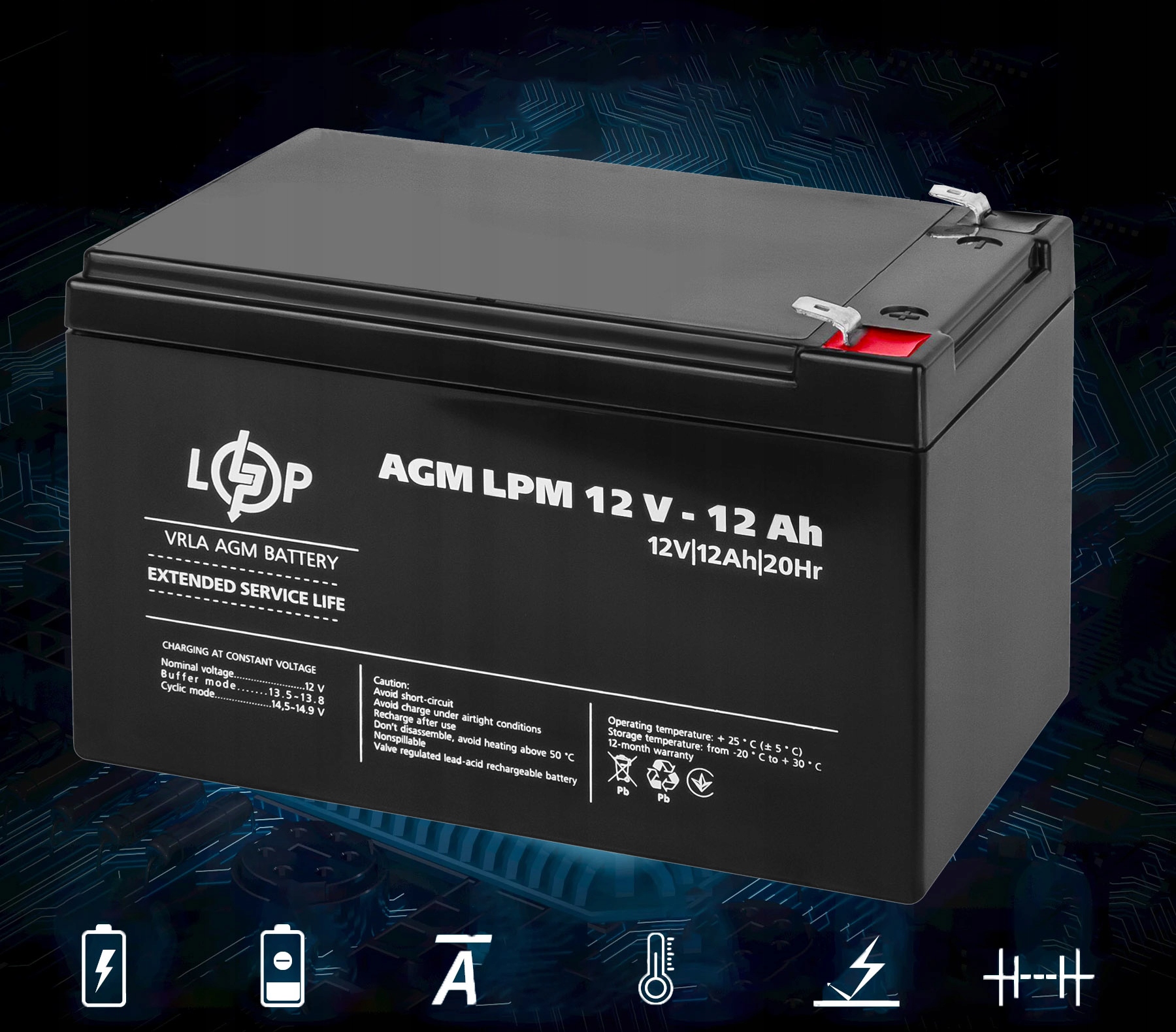 Аккумуляторы серии LPM, изготовленные по технологии AGM (Absorbent Glass Mat), предназначены в основном для использования в системах аварийного электроснабжения (ИБП, системы автоматизации), солнечных электростанциях и преобразователях напряжения.