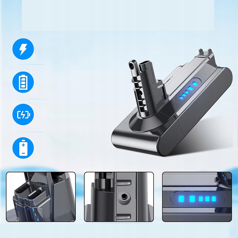 - Запасной аккумулятор V10 для пылесоса Dyson емкостью 6000 мАч. Работает как оригинальный аккумулятор V10, обеспечивая превосходную мощность всасывания и более длительное время работы в вакууме.