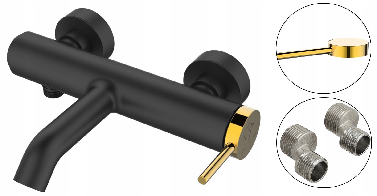 Смеситель для ванны 27Х20 см настенный OVE STICK ЧЕРНЫЙ + ЗОЛОТО
