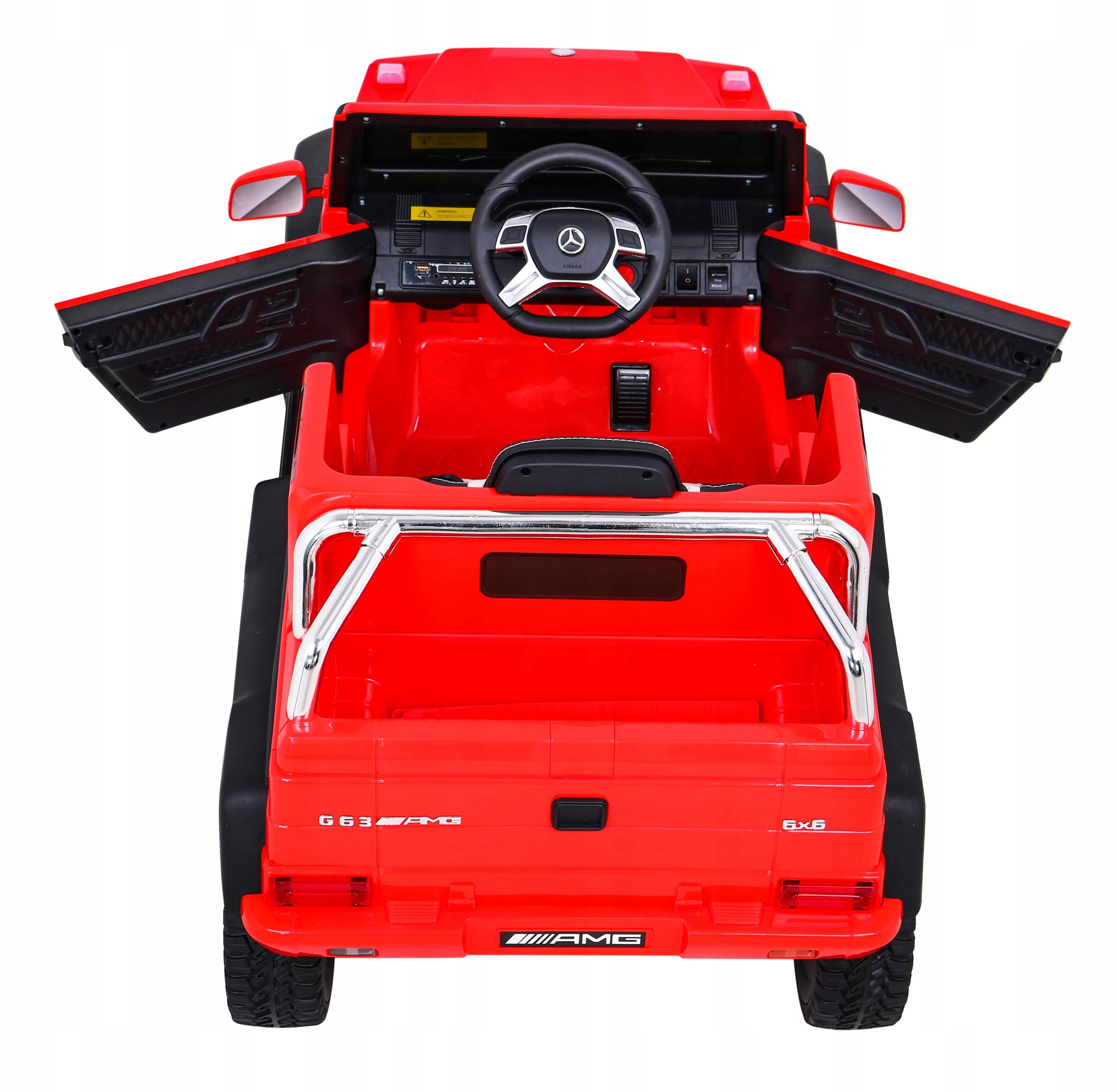 Аккумуляторный Mercedes G63 имеет дополнительные функции и оснащение. Речь идет о просторном багажнике, расположенном в задней части автомобиля. Это будет идеальное место для хранения игрушек и самых необходимых безделушек.
