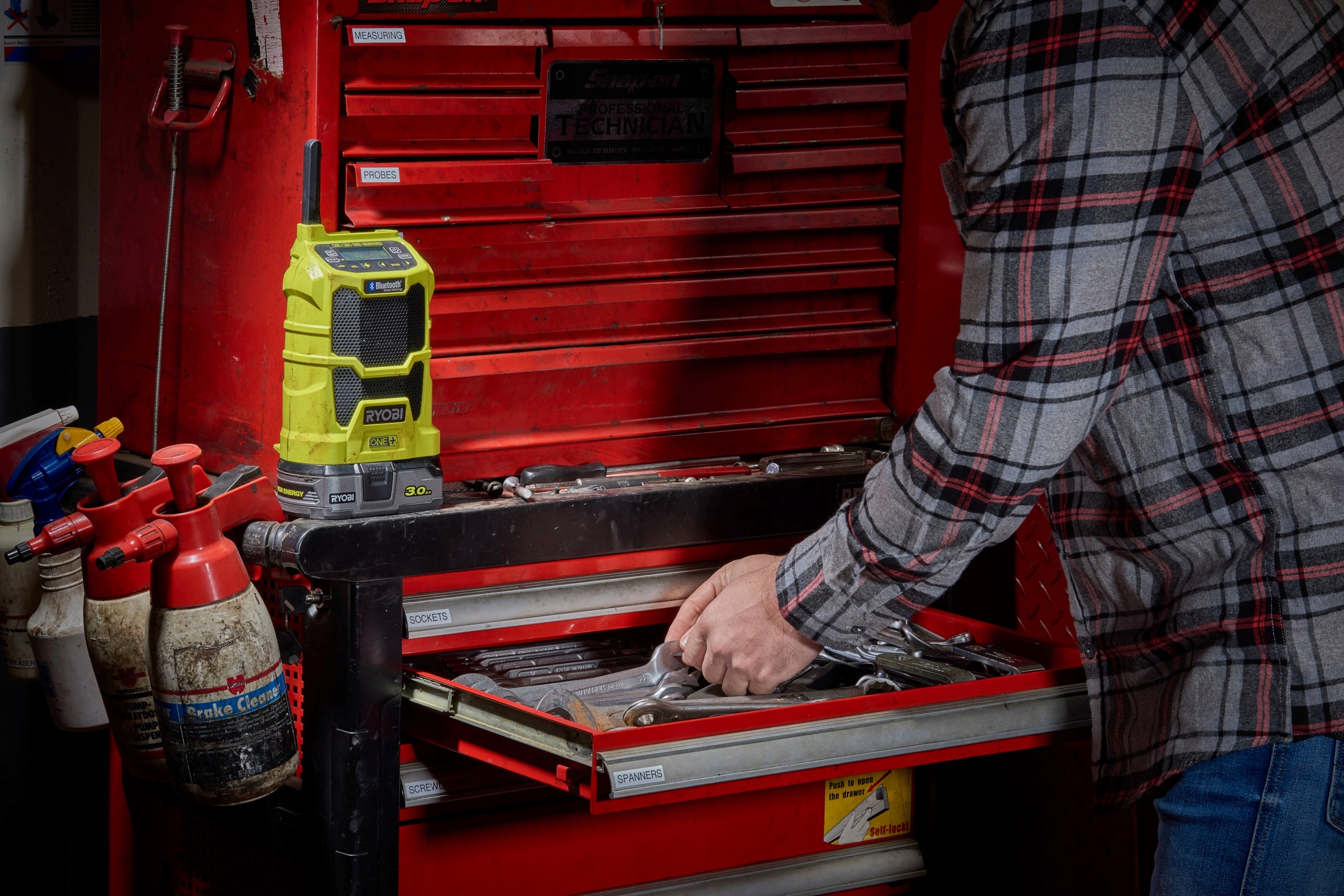 Аккумуляторная радиостанция Ryobi R18R-0 с технологией Bluetooth — это устройство, гарантирующее очень хорошее качество звука на полной громкости в удобном месте, без необходимости наличия электрической розетки для кабеля питания.