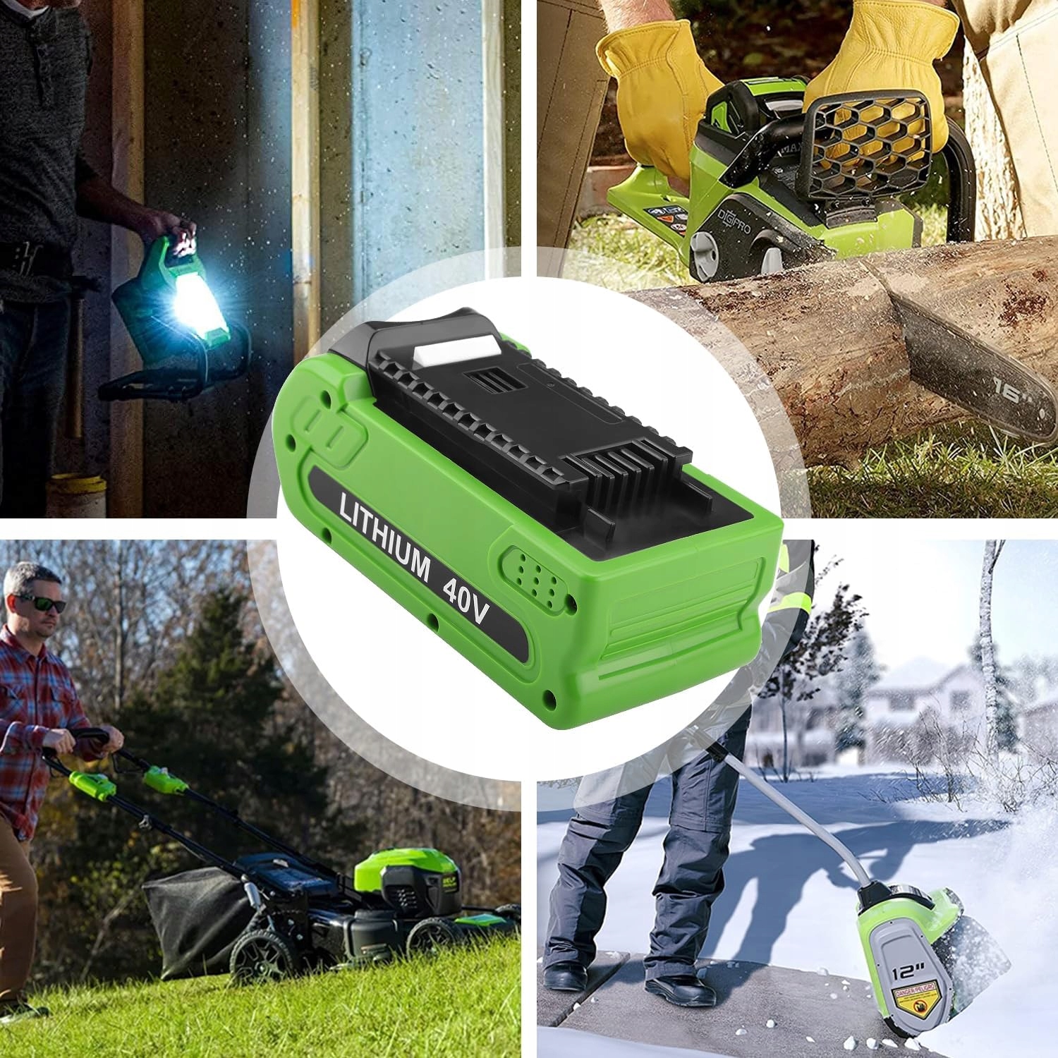 Совместимость со всеми аккумуляторными инструментами GreenWorks серии G-MAX 40 В.