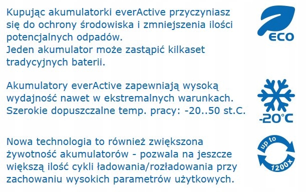Фактическая емкость аккумуляторов everActive соответствует заявленным на аккумуляторе/блистере - в соответствии с международным стандартом IEC 61951-2 (7.3.2).