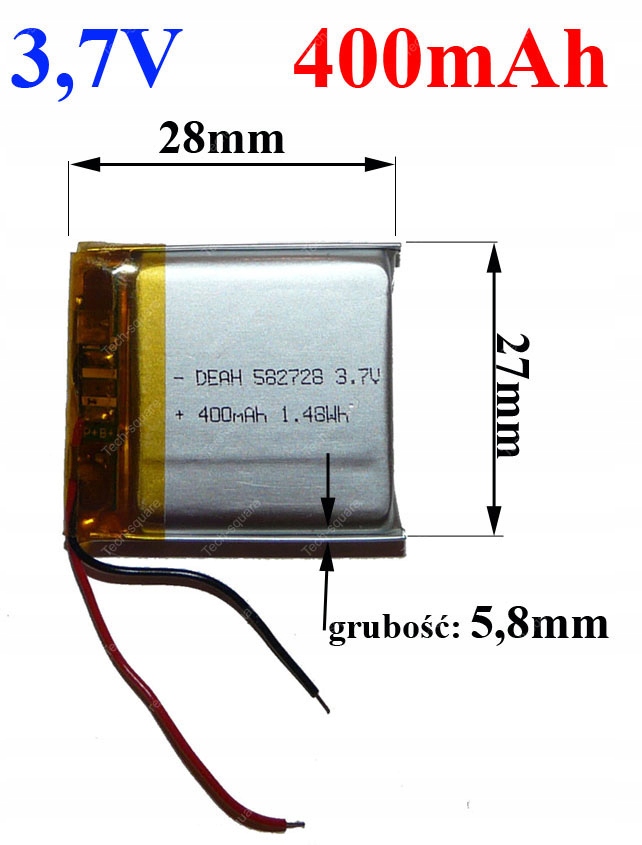- Аккумулятор: 3,7 В 400 мАч литий -полимерная батарея