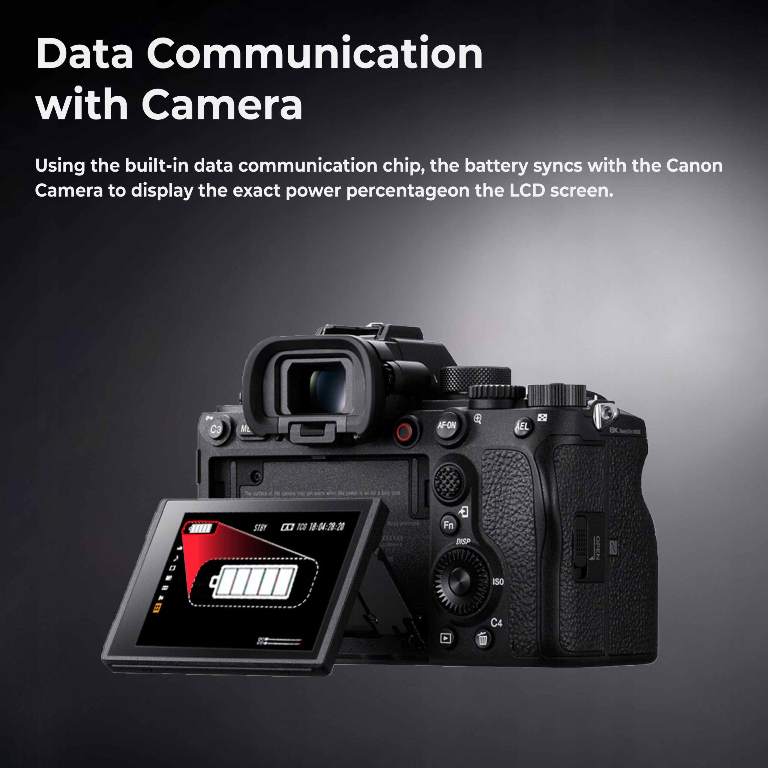 Встроенный чип связывается с камерой и отправляет текущую информацию о состоянии заряда аккумулятора.