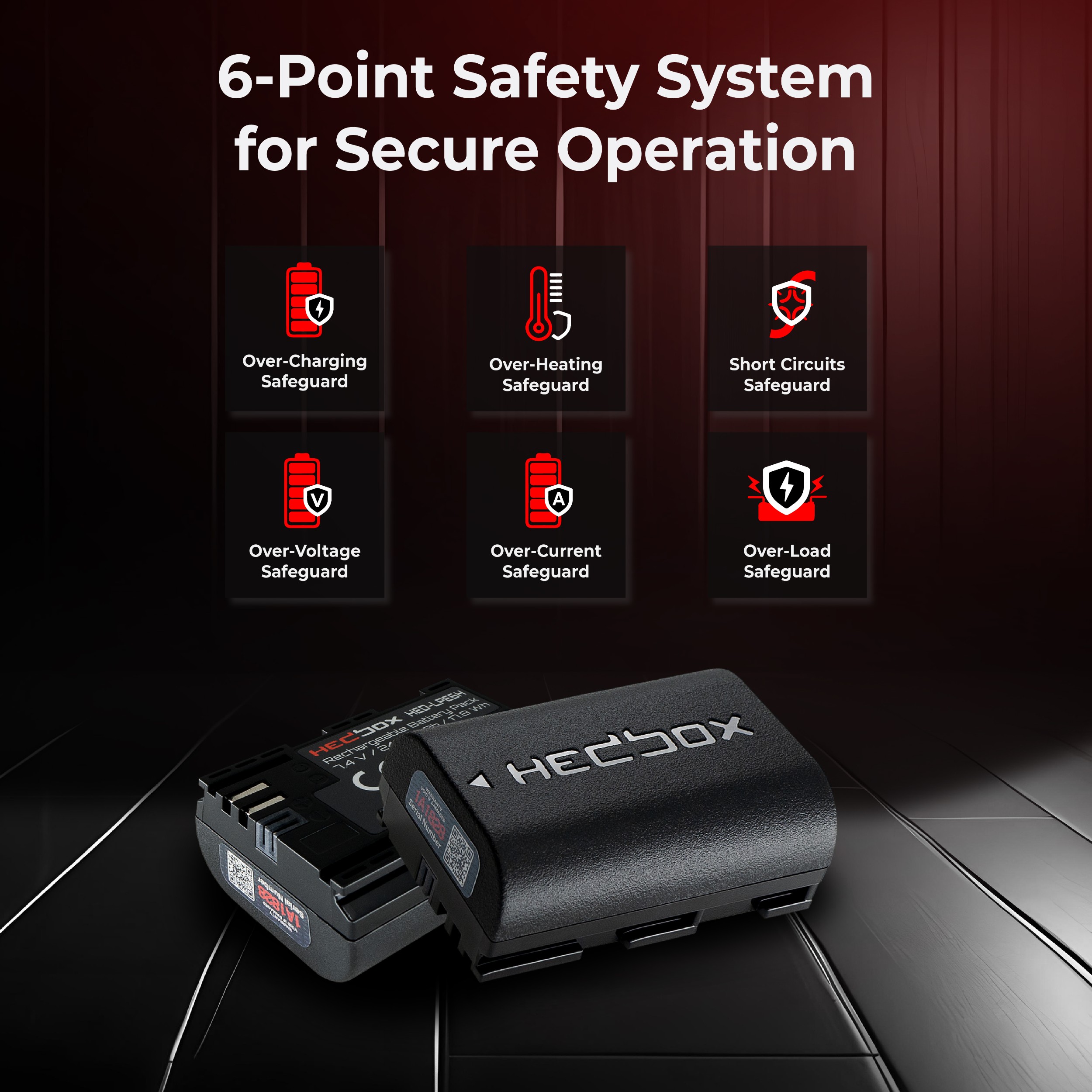 HED-LPE6H — легкий и компактный аккумуляторемкостью 2400 мАч / 17,8 Втч, предназначенный для камер Canon и других аксессуаров, совместимых с аккумуляторами LPE6.