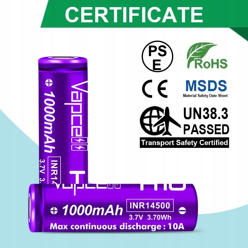 Батарея батарея INR 14500 Vapcell H10 1000MAH 3.7V Li-Ion 10a 10a