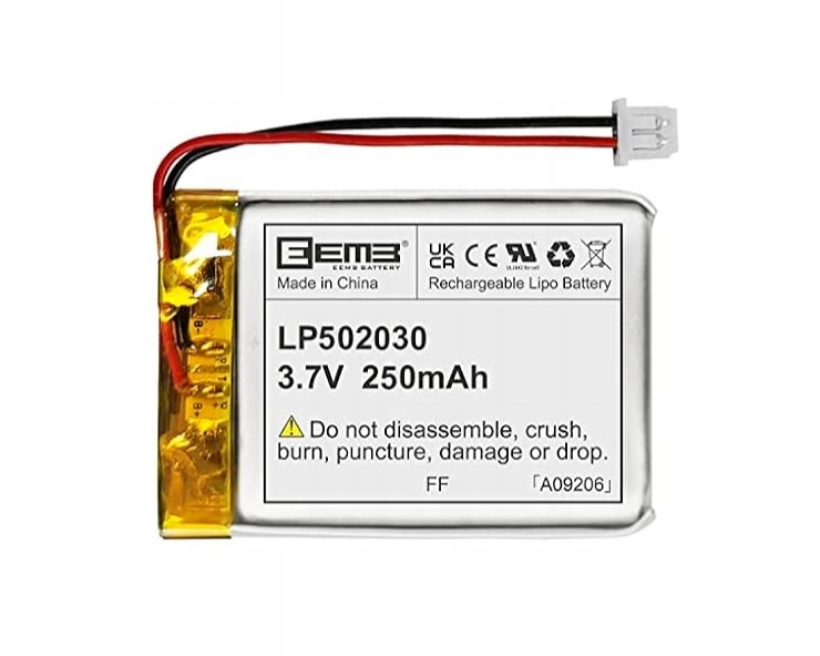 Просматривая «Аккумуляторная батарея Li-Po 250mah 3.7V PCM», вы можете быть уверены, что данный товар из каталога «Аккумуляторы, аккумуляторы» будет доставлен из Польши и проверен на целостность. В цене товара, указанной на сайте, учтена доставка из Польши. Внимание!!! Товары для Евросоюза, согласно законодательству стран Евросоюза, могут отличаться упаковкой или наполнением.