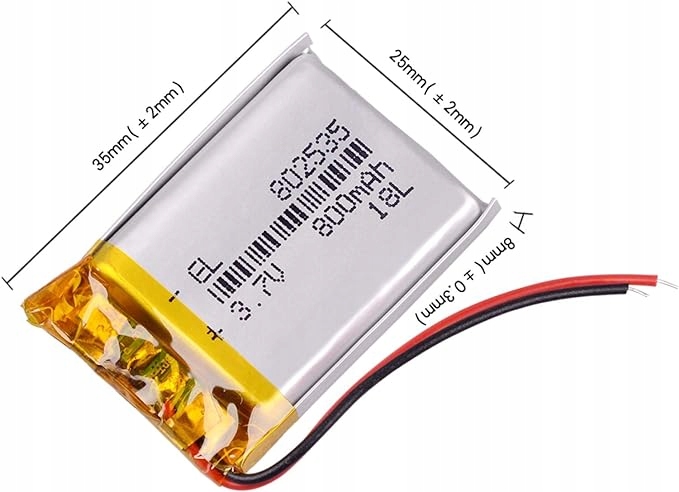 Литий-полимерный аккумулятор емкостью 800мАч - 2 провода