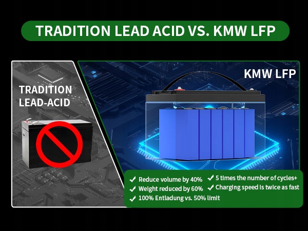 Аккумулятор KMWThunder 100 Ач LiFePO4, современные элементы LiFePO4 класса A. Наша батарея lifepo4 емкостью 100 Ач выдерживает более 5000 циклов и 10 лет. В ключах к свинцово-кислотным батареям используются литий-ионные батареи глубокого цикла, основанные на включении, экологически безопасные и встроенные, что является одной из замен свинцово-кислотных батарей.