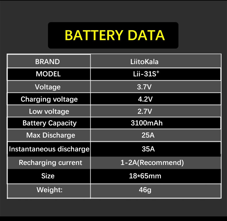 Новый литий-ионный аккумулятор LiitoKala Lii-31S+ 18650, 3,7 В, 3100 мА, 35 А, для устройств с высоким энергопотреблением, специально предназначенных для электронных сигарет
