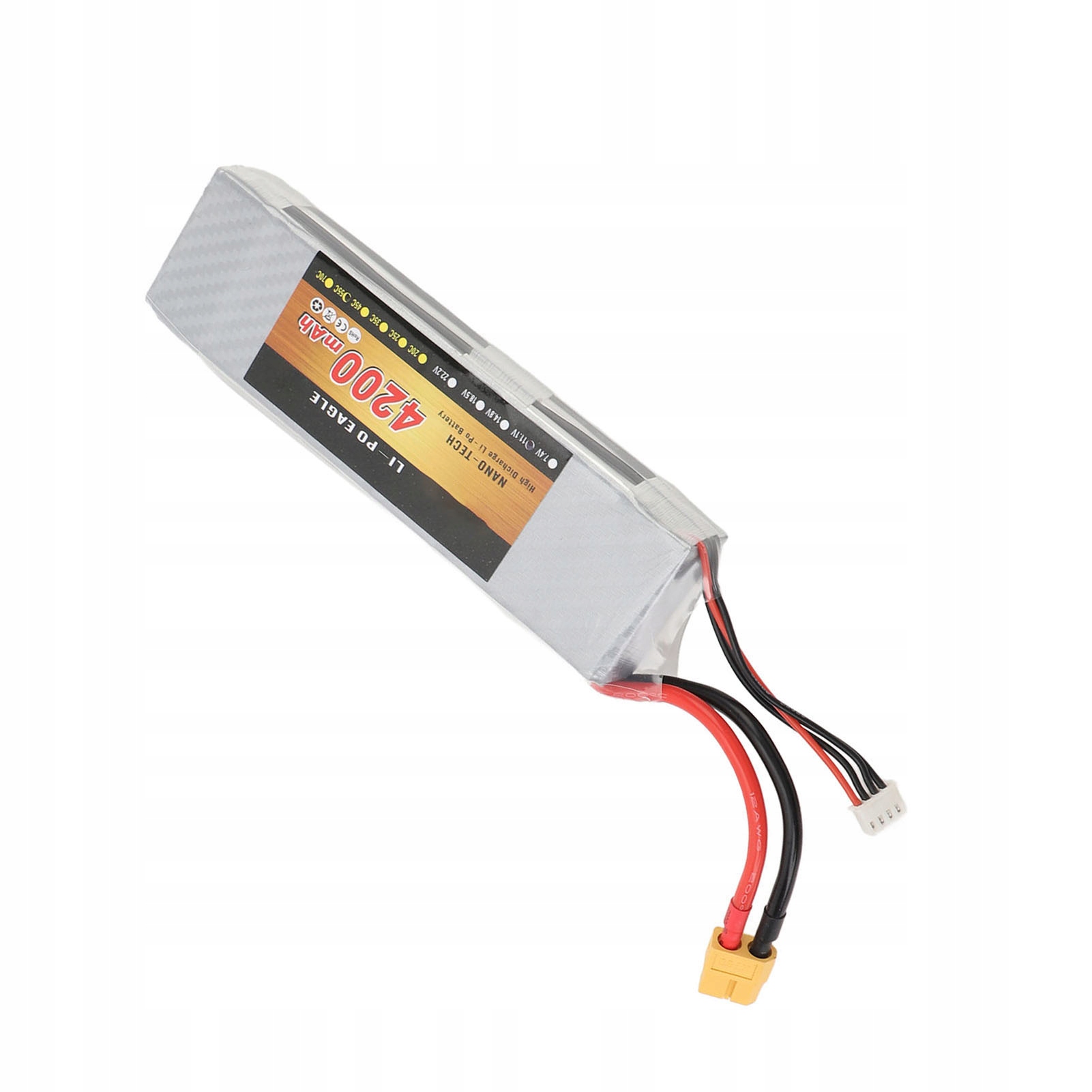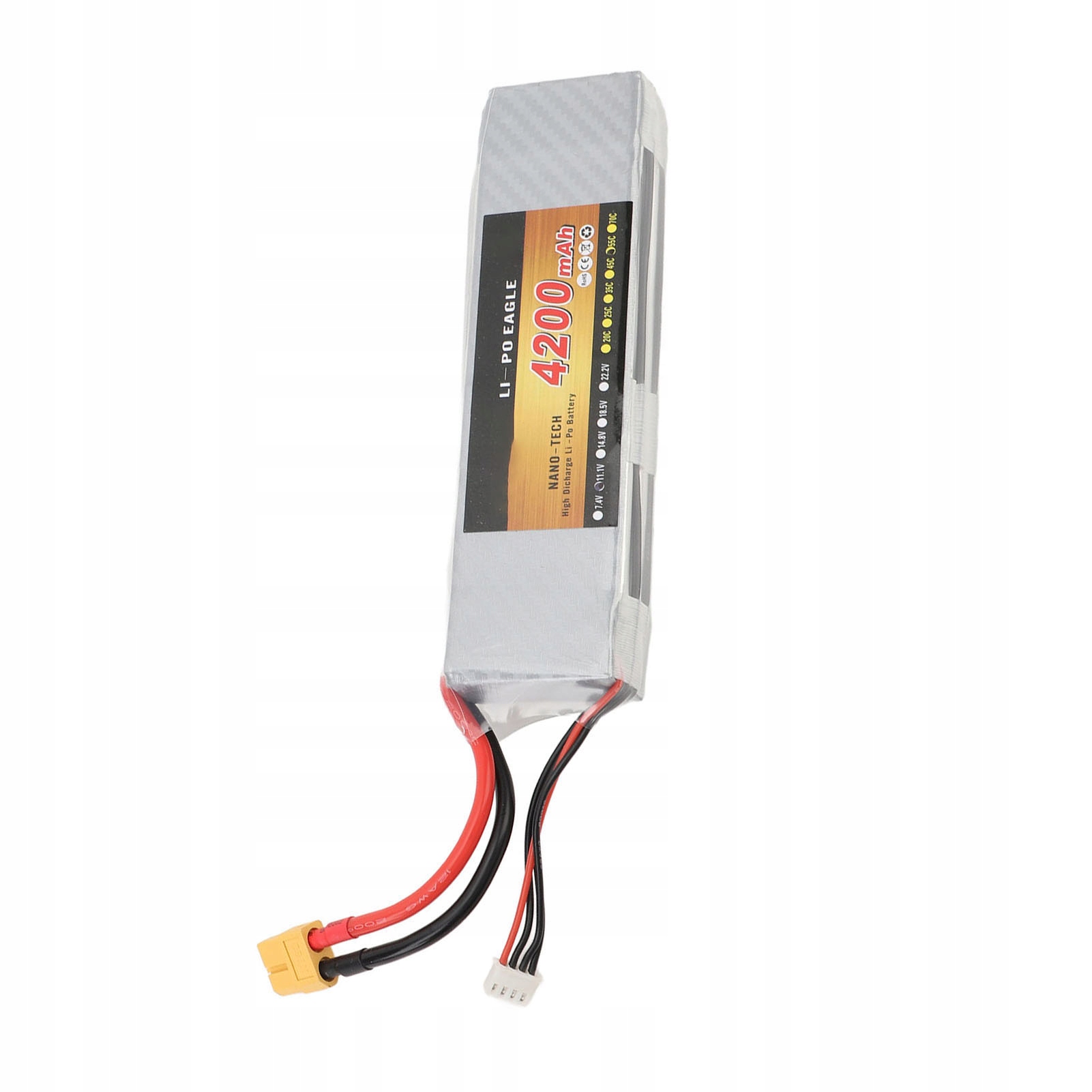 1. Широкая совместимость: сменный LiPo аккумулятор 11,1 В, 4200 мАч со штекером XT60 подходит для радиоуправляемой модели автомобиля, вертолета, квадрокоптера в масштабе 1/10. 2. Легкий дизайн: липо-батарея 3S имеет легкий вес и удобна в переноске. Обеспечивает идеальный баланс веса, мощности и эффективности. 3. Прочная конструкция: корпус Lipo-аккумулятора изготовлен из прочного пластика, который обеспечивает длительный срок службы и надежное питание для радиоуправляемых вертолетов. 4. Увеличенный срок службы батареи: прочная липо-батарея емкостью 4200 мАч обеспечивает более длительный срок службы батареи, что позволяет дольше играть и получать максимальное удовольствие от игрушки. 5. Функции безопасности: литиевая батарея 11,1 В, 4200 мАч оснащена защитой от перезаряда и короткого замыкания, обеспечивающей безопасность во время процесса зарядки.