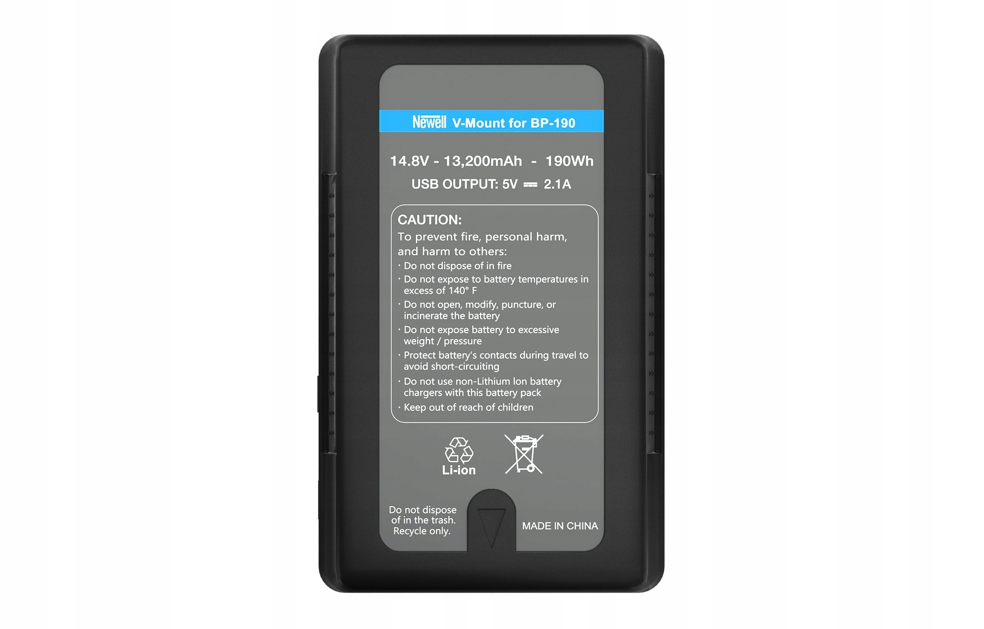 Когда вы снимаете профессионально, вы не можете допустить неожиданного отключения электроэнергии. Newell BP-190 V-Mount гарантирует высокое качество, безопасность и передовые технологии по привлекательной цене. Аккумулятор с креплением V-Mount (V-Lock) подходит ко многим профессиональным камерам, в том числе: Sony, Red, Arri, Blackmagic и различные типы освещения.
