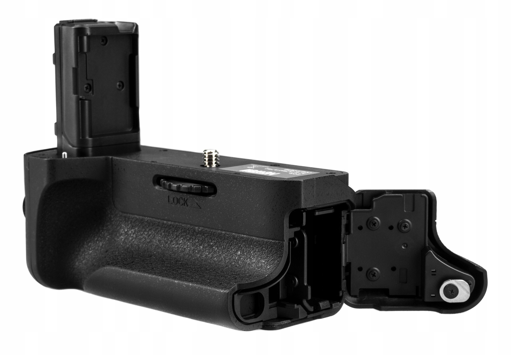 Держатель позволяет установить два аккумулятора NP-FW50. В нижней части расположено гнездовое крепление 1/4", позволяющее использовать фотографический штатив, не снимая рукоятку с фотоаппарата. Также оснащено дополнительным зажимом для ремня. Рукоятка имеет полный функционал системы Sony VG-C2EM. Оснащена двухступенчатой кнопкой спуска затвора, переключателем, регулировочными колесиками и тремя функциональными кнопками. Легкое нажатие на кнопку позволяет сфокусироваться, нажатие до конца - спускает затвор. Аналогично кнопке в самой камере.