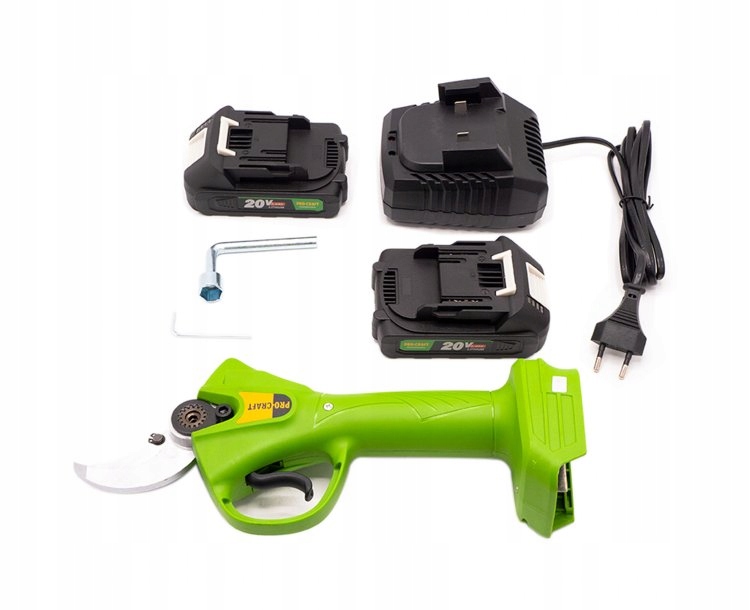 бесплодные ветви Aku предназначены в основном для разрезания фруктовых деревьев и виноградных лоз до диаметра 37 мм. Поставлен в чемодан с батареями 2x2AH и зарядным устройством.