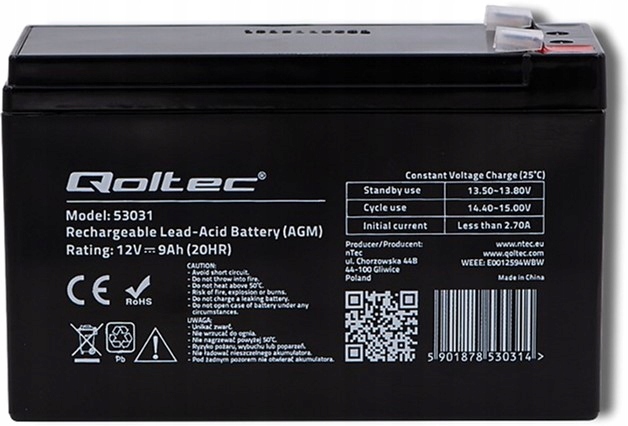 Оплачивая «АКУМУЛЯТОР QOLTEC LONGLIFE AGM 12V 9AH НЕ ОБСЛУГОВУЄТЬСЯ ДБЖ», вы можете быть уверены, что данное изделие из каталога «Аккумуляторы» будет доставлено из Польши и проверено на целостность. В цене товара, указанной на сайте, учтена доставка из Польши. Внимание!!! Товары для Евросоюза, согласно законодательству стран Евросоюза, могут отличаться упаковкой или наполнением.