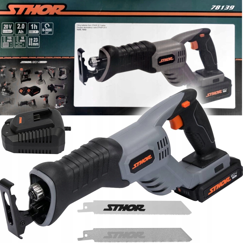 - Состав комплекта: сабельная пила, два пильных полотна, аккумулятор 2 Ач, зарядное устройство.
