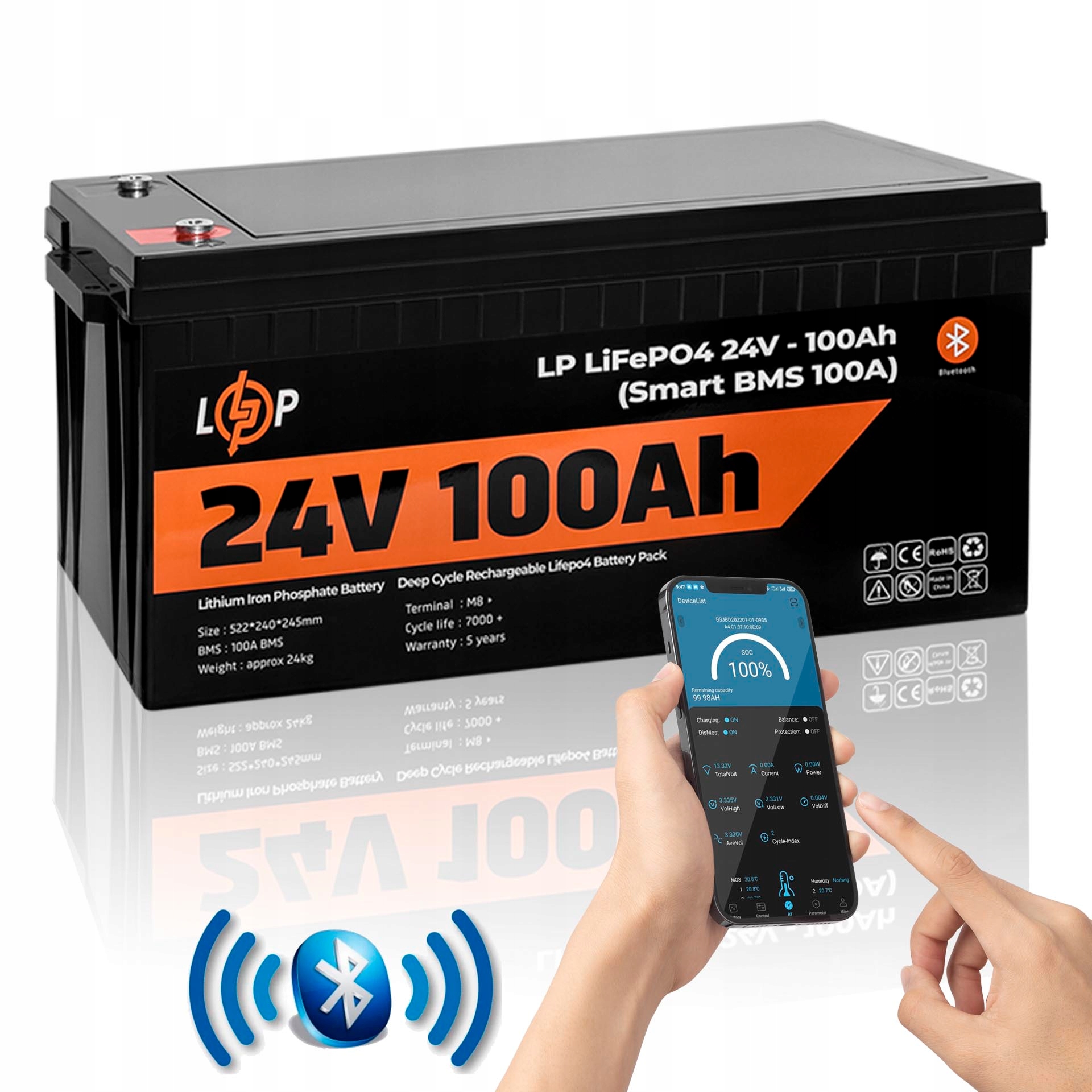 ВЫСОКОКАЧЕСТВЕННАЯ, НЕОБХОДИМАЯ ДЛЯ ОБСЛУЖИВАНИЯ АККУМУЛЯТОРНАЯ БАТАРЕЯ SMART LP LIFEPO4 24 В - 100 Ач (SMART BMS 100A)