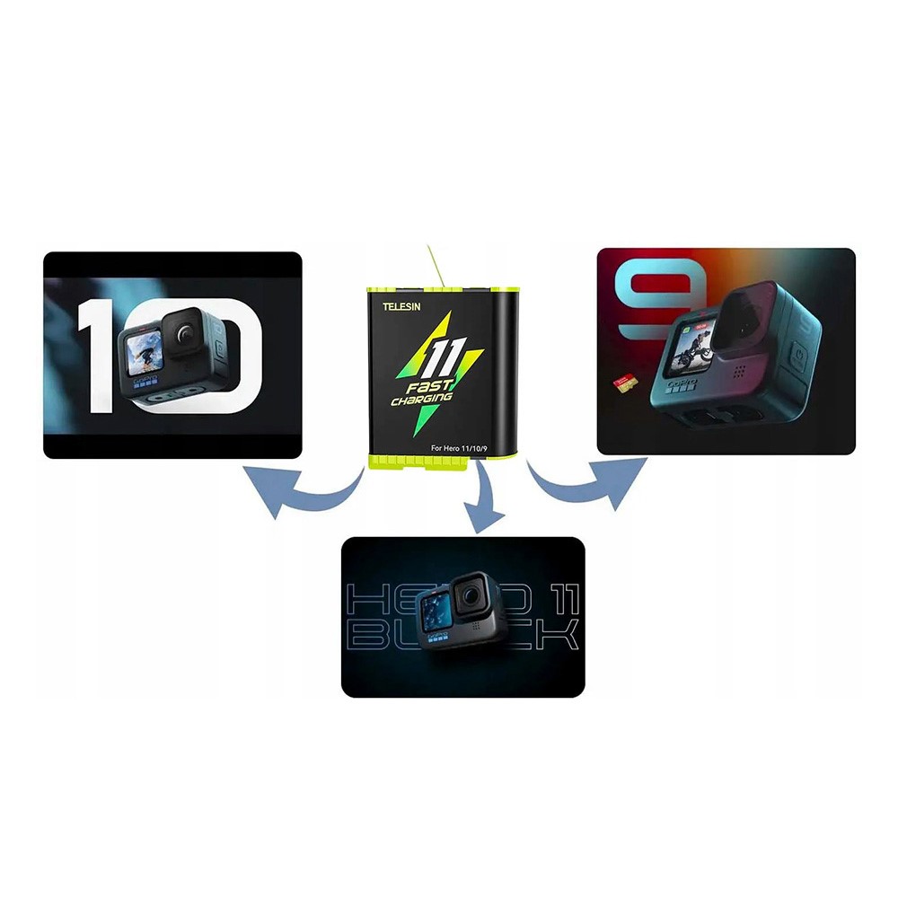 Наслаждайтесь длительным временем работы вашей спортивной камеры. Аккумулятор Telesin GP-FCB-B11 совместим с GoPro 9, 10 и 11, его емкость составляет 1750 мАч. Изделие поддерживает быструю зарядку и эффективно защищено от повреждений. Получите больше времени для записи потрясающих видео!