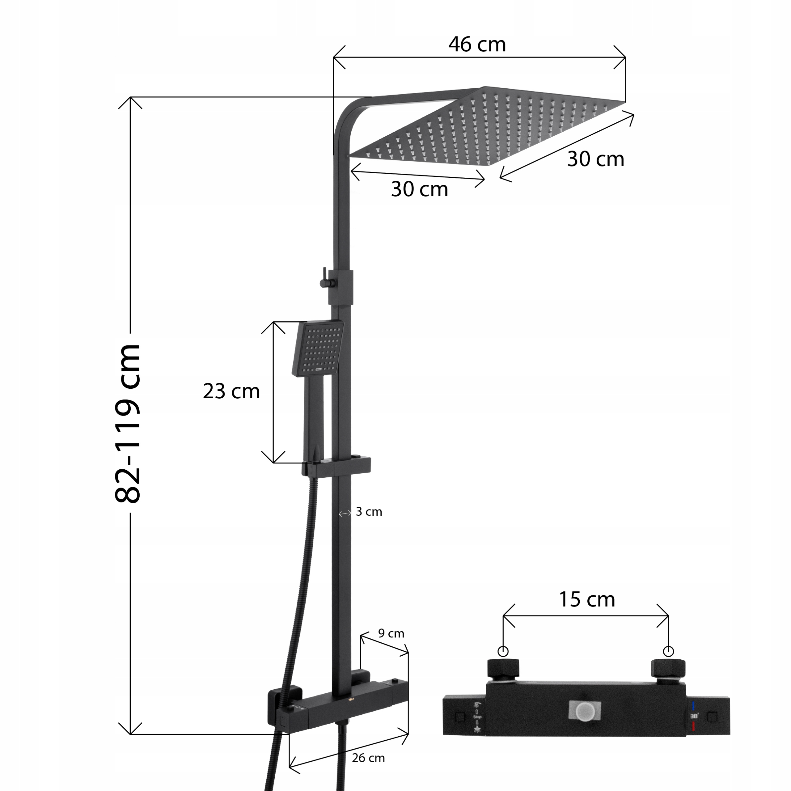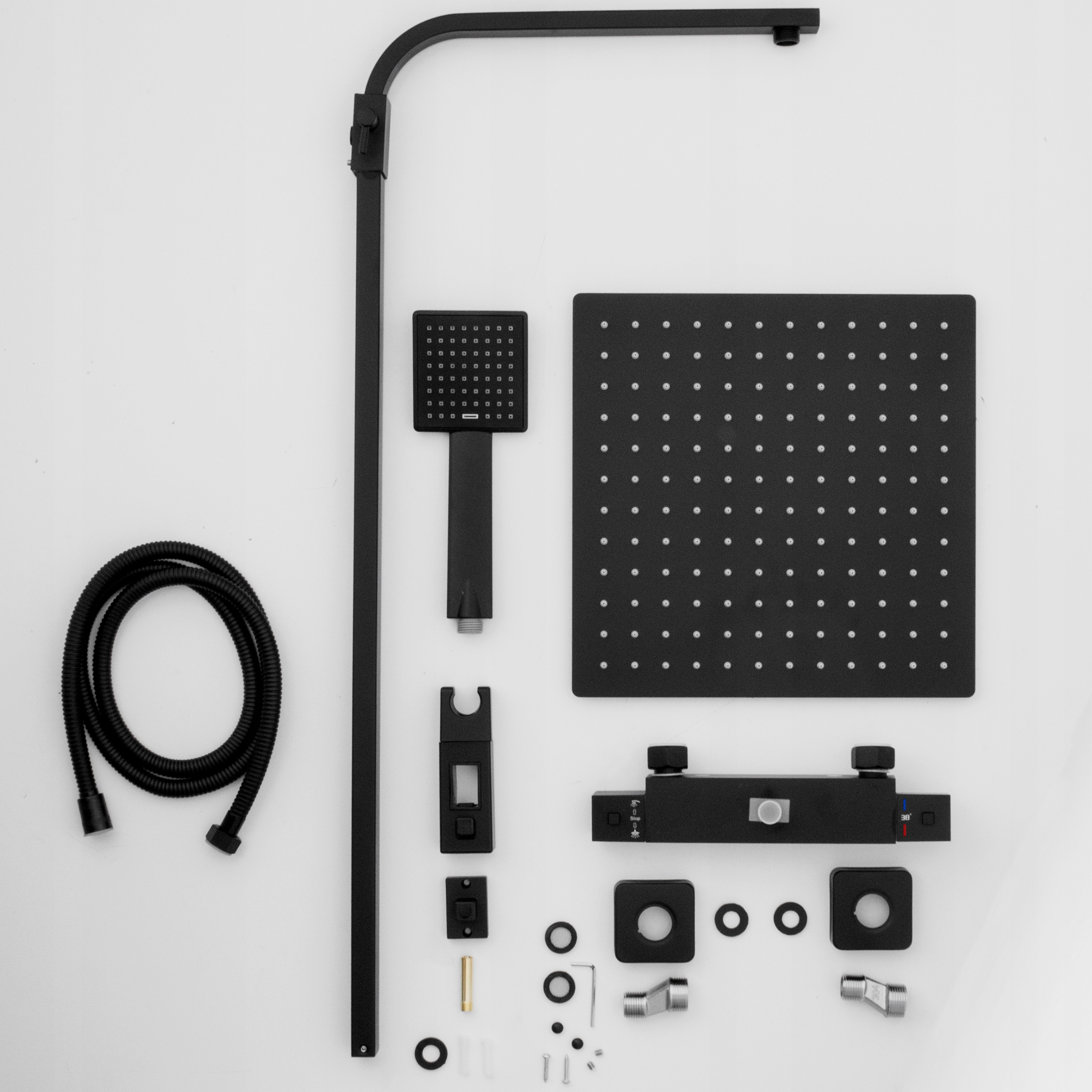 набор душа 30x30 см. Машины для душа. Черная термостатическая батарея h1>