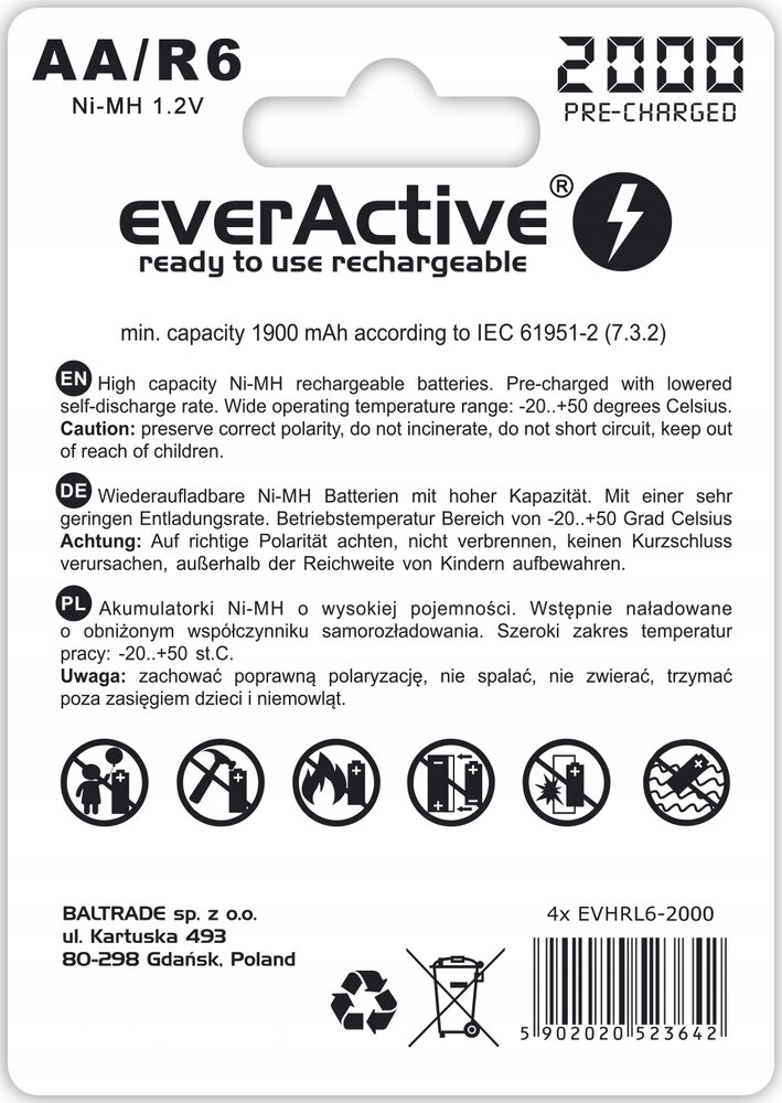 БАТАРЕЙКИ 4 ШТ. AA R6 2000 мАч EVERACTIVE Ni-MH