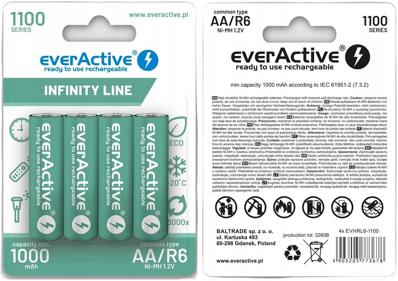 AA/R06 Ni-MH аккумуляторы EverActive 1100 мАч Infinity Line, 3000 циклов (бл.