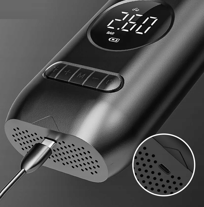 Портативный компрессор оснащен фонариком, что делает его идеальным для различных неожиданных ситуаций.